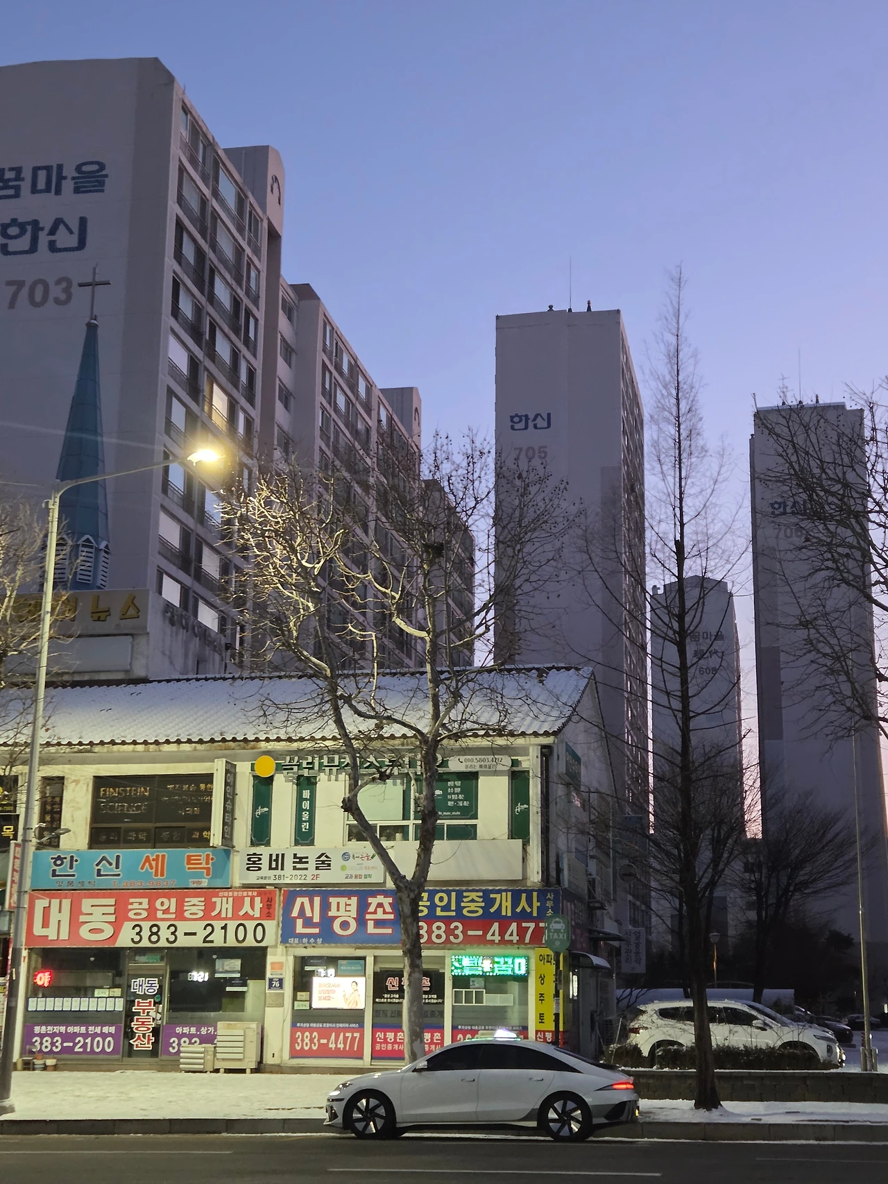 평화로운 아침, 아직 해가 뜨지 않은 무렵 길을 나선다. 평일의 새벽에는 간혹 사람이 보이는 정도라도 토요일의 아침은 고요하고 한산하다. 어제 버스를 기다리며 어정쩡하게 서 있었던 나와 달리, 오늘은 여유가 있다. 한 숨을 깊이 내뱉는데, 어제 마신 알코올 향이 살짝 올라온다. 무심코 밝게 빛나는 것을 달인줄 알았는데, 가로등 불빛이었다. 약간은 허탈하며 버스가 오기만을 기다린다.