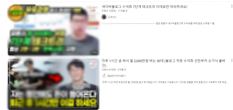당장 유튜브에 블로그 부업이라고 검색하면 이대로만 따라 하면 쉽게 돈을 벌 수 있을 것 같다.