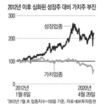 코로나 쇼크 이후, 기존의 가치주는 경제 재건에 대한 불안감으로 성장주에 비해 큰 폭으로 상승하지 못했다. 또한, 2010년 이후 미국의 FAANG이라는 기술주 중심의 초우량주가 출현했고, 기존 가치주의 주가를 2배 이상 상회하는 주가상승률을 보여주었다.