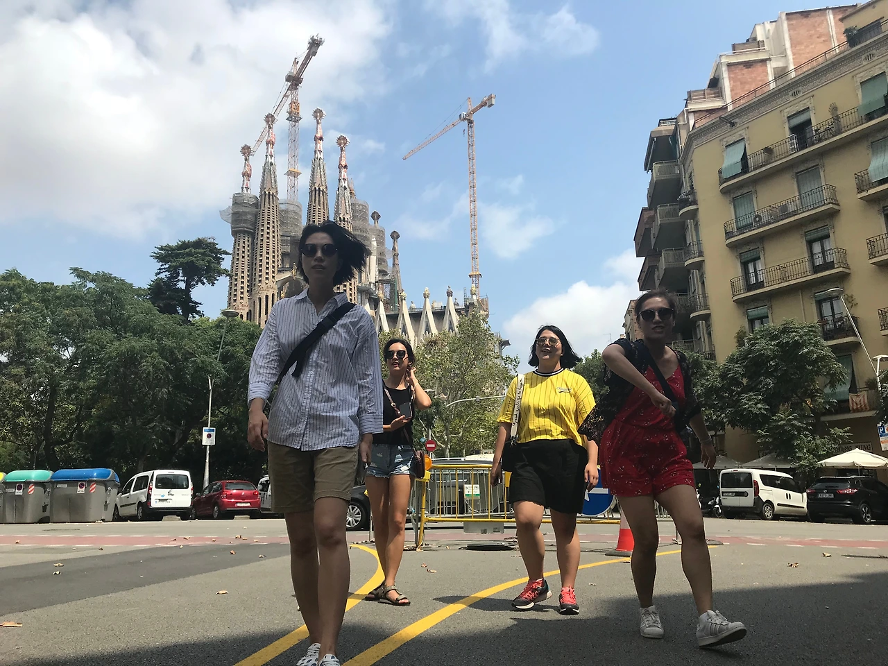 역시 구경 끝에 돈쓰는 곳이 제일 좋지, 기념품샵에서 엽서과 달력을 몇장을 샀다. 셀비도 에이미도 한웅큼을 사고 건물 밖으로 나왔다. 배가 고파와서 까사 밀라 건물에 있는 레스토랑에서 밥을 먹고 성당으로 움직이기로 했다. 스페인에 오기전부터 에이미가 점찍어 두었던 곳이었는데 들어가서 볕이 드는 창가 자리에 자리를 잡았다. 점원이 어리버리하는거 보니 서비스나 맛보다는 까사밀라와 비슷한 분위기로 먹고 사는 레스토랑 같았다. 우선 매우 더워서 맥주 한잔을 급하게 마시고 메뉴를 주문했고 맛은 평범했다. 인테리어가 아름다우니 돌아가며 사진을 찍고 성당을 향해 길을 나섰다.