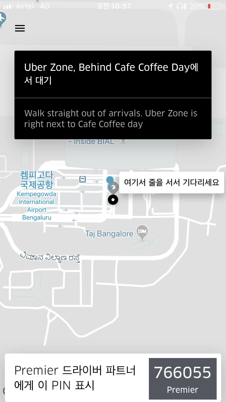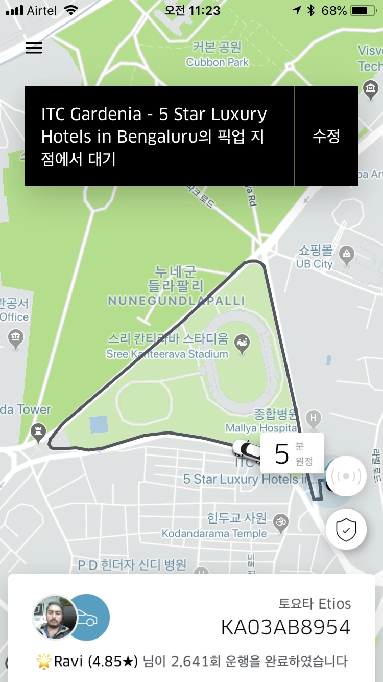 벵갈루루에도 우버를 사용할 수 있어서 공항 도착 후에 우버를 불렀는데, 왠일인지 핀번호가 나온다. 올라의 경우에 기사가 매칭되면 탑승 후에 내 화면에 보이는 핀번호를 입력해야 운행이 시작되는데, 벵갈루루에서만 핀번호 방식인가 싶었는데 매칭된 기사의 얼굴이나 차량을 화면에서 찾을 수 없었다.