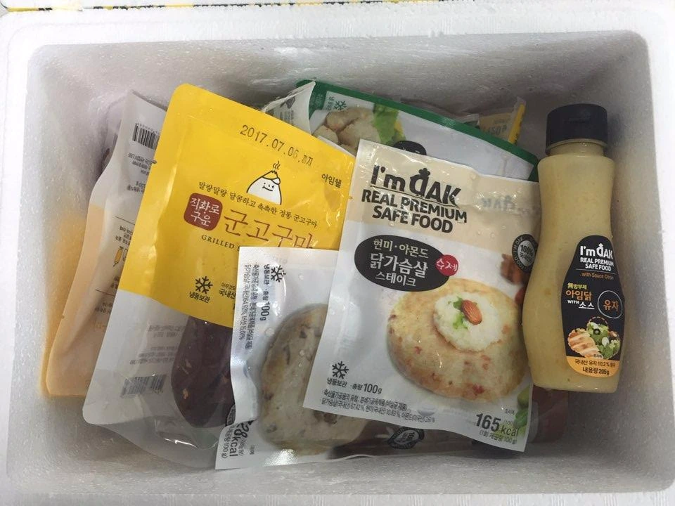 지난주 금요일 오후에 주문을 하고 화요일에 받았다. 스티로폼에 아이스팩 2개로 꼼꼼히 포장되어 배달되었다. 운동 직후라 타이밍을 잘도 맞춰 왔다.