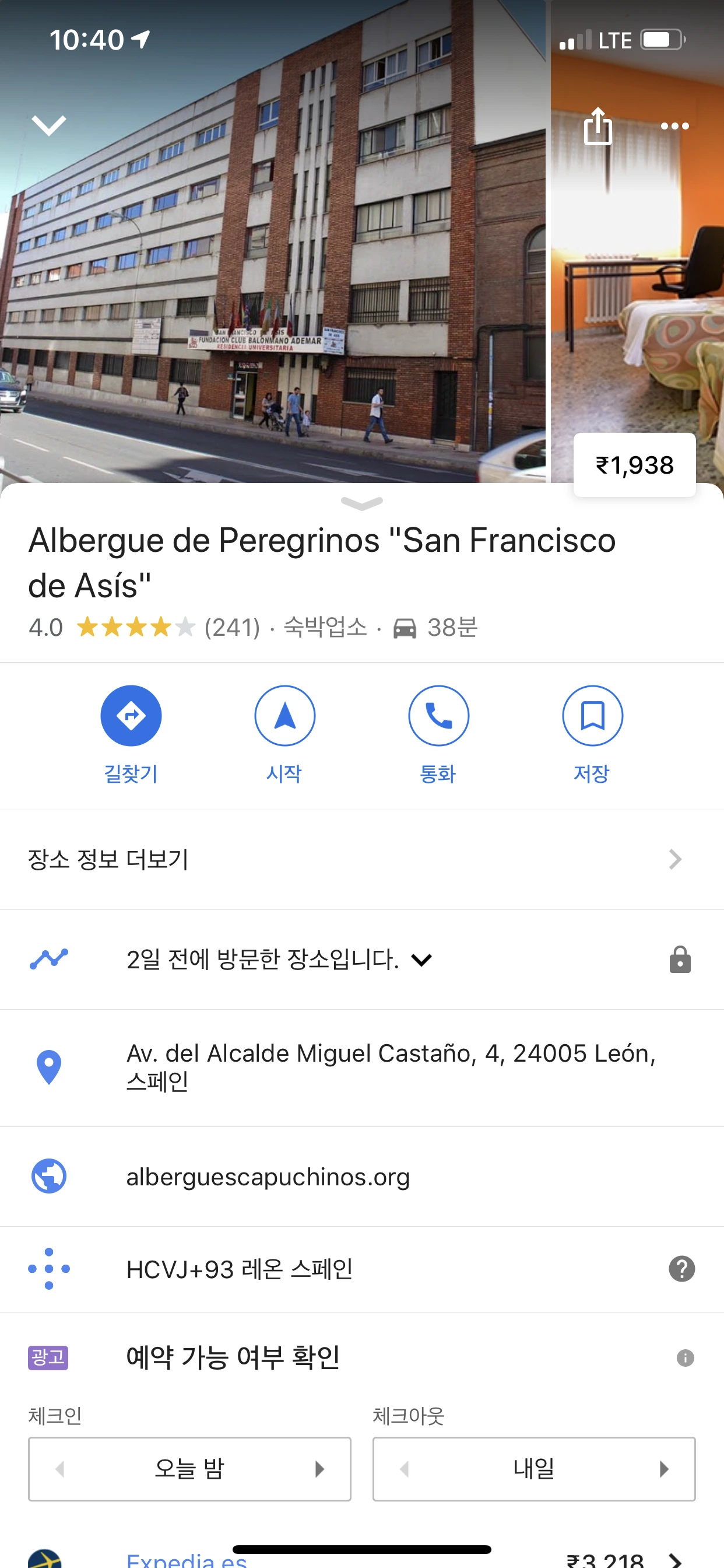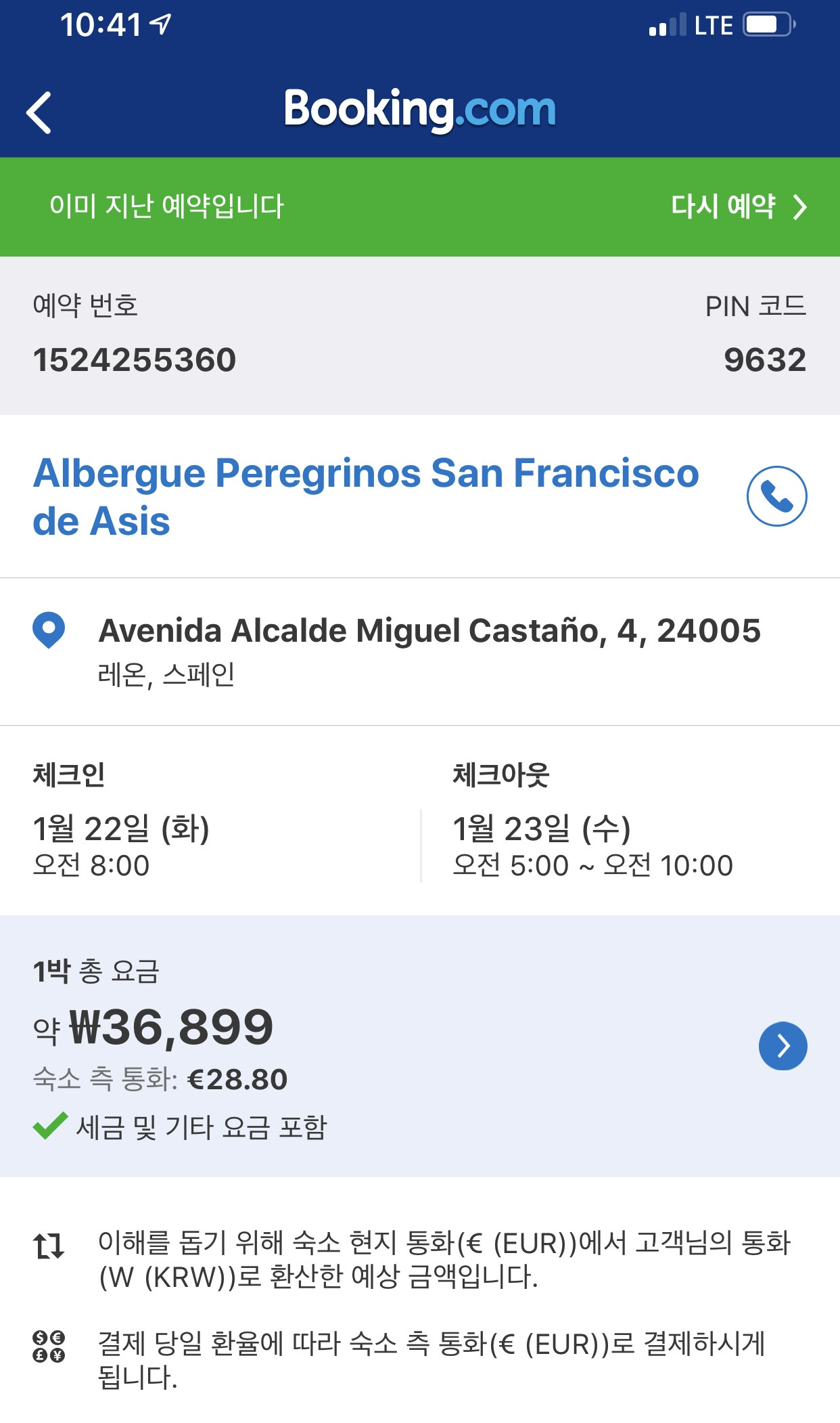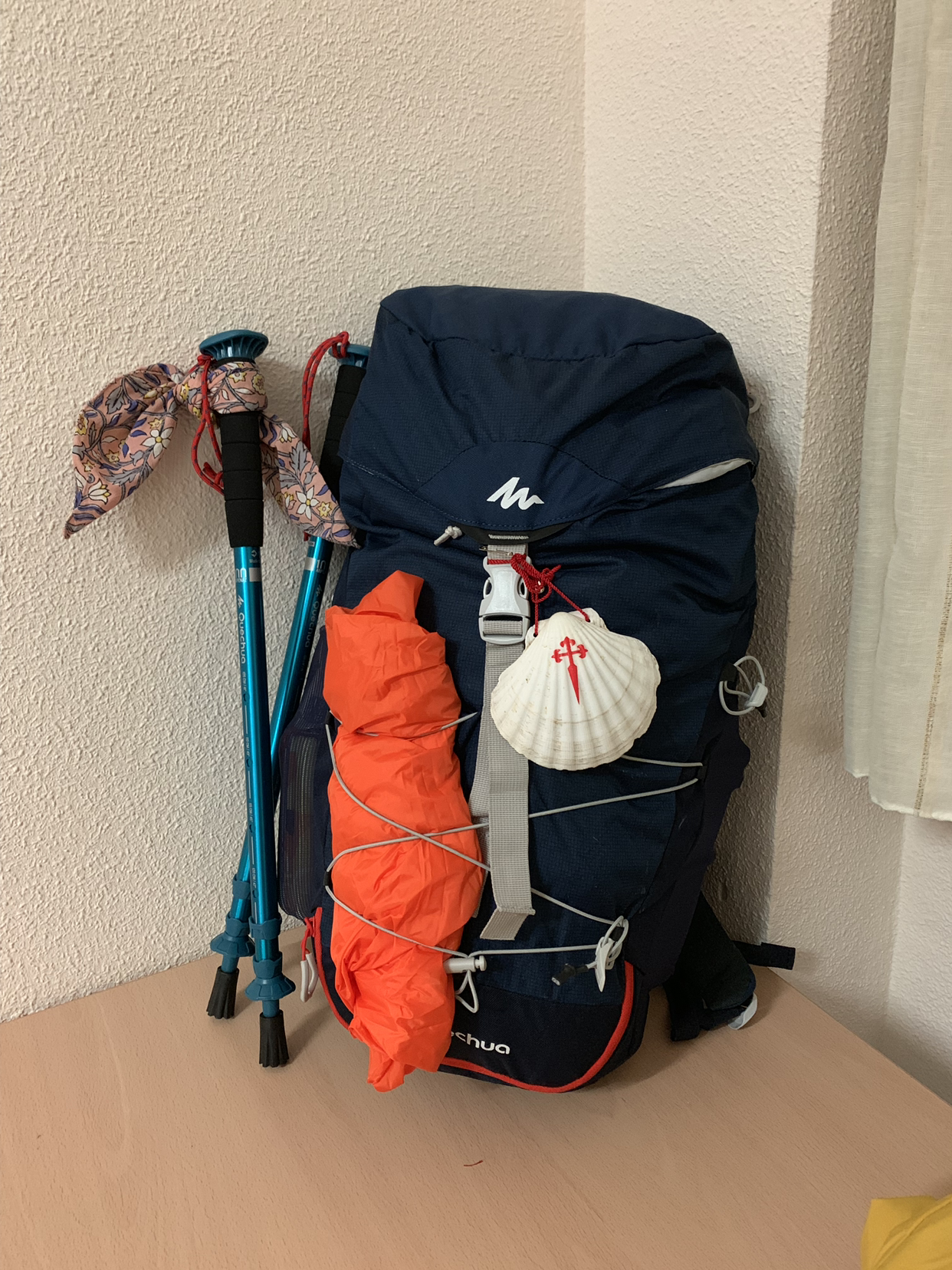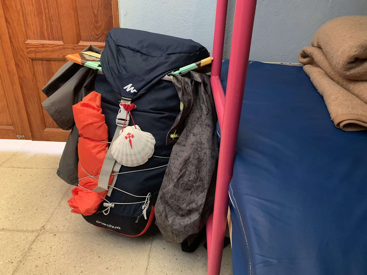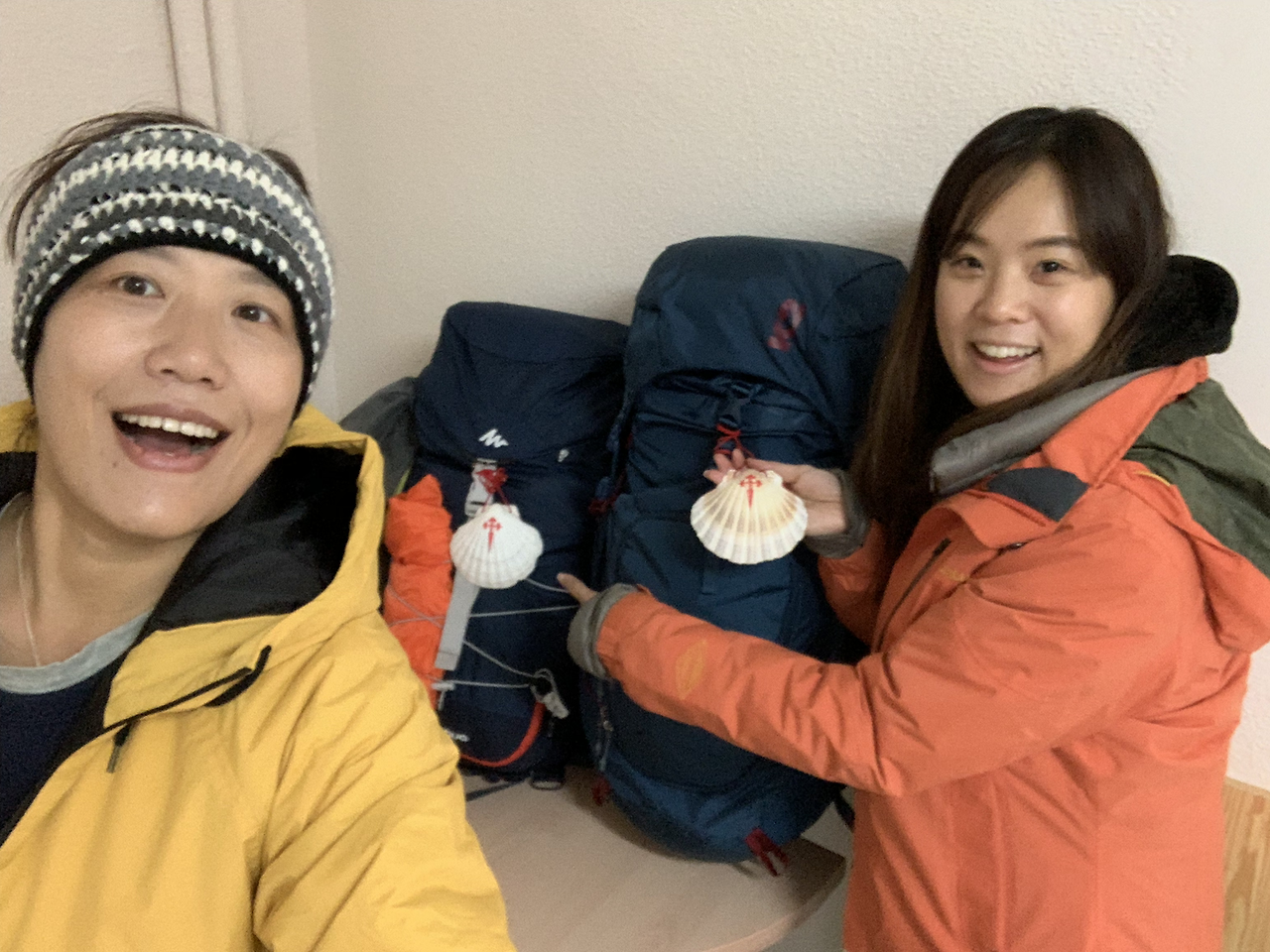 오늘 묵을 숙소까지는 대략 걸어서 13분, 폰이 안내하는데로 따라갔다. 피곤하기도 한기가 느껴져 발걸음이 점점 빨라졌다. 도착한 우리의 첫번째 알바르게(순례자 숙소를 이르는 말)는 크고 깔끔했다. 입구에서 체크인을 하고 순례자 여권도 만들고 까미노의 상징인 커다란 가리비도 샀다. 키를 받아 올라간 숙소는 생각보다 넓었고(마드리드에서 묵었던 호텔) 방안에 화장실과 욕실이 별도로 있었다.