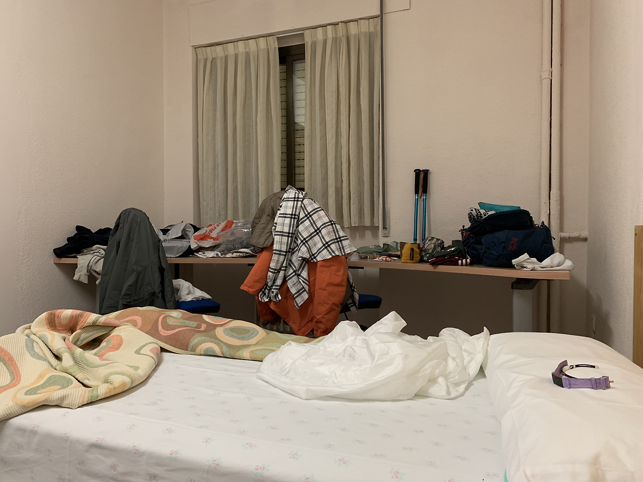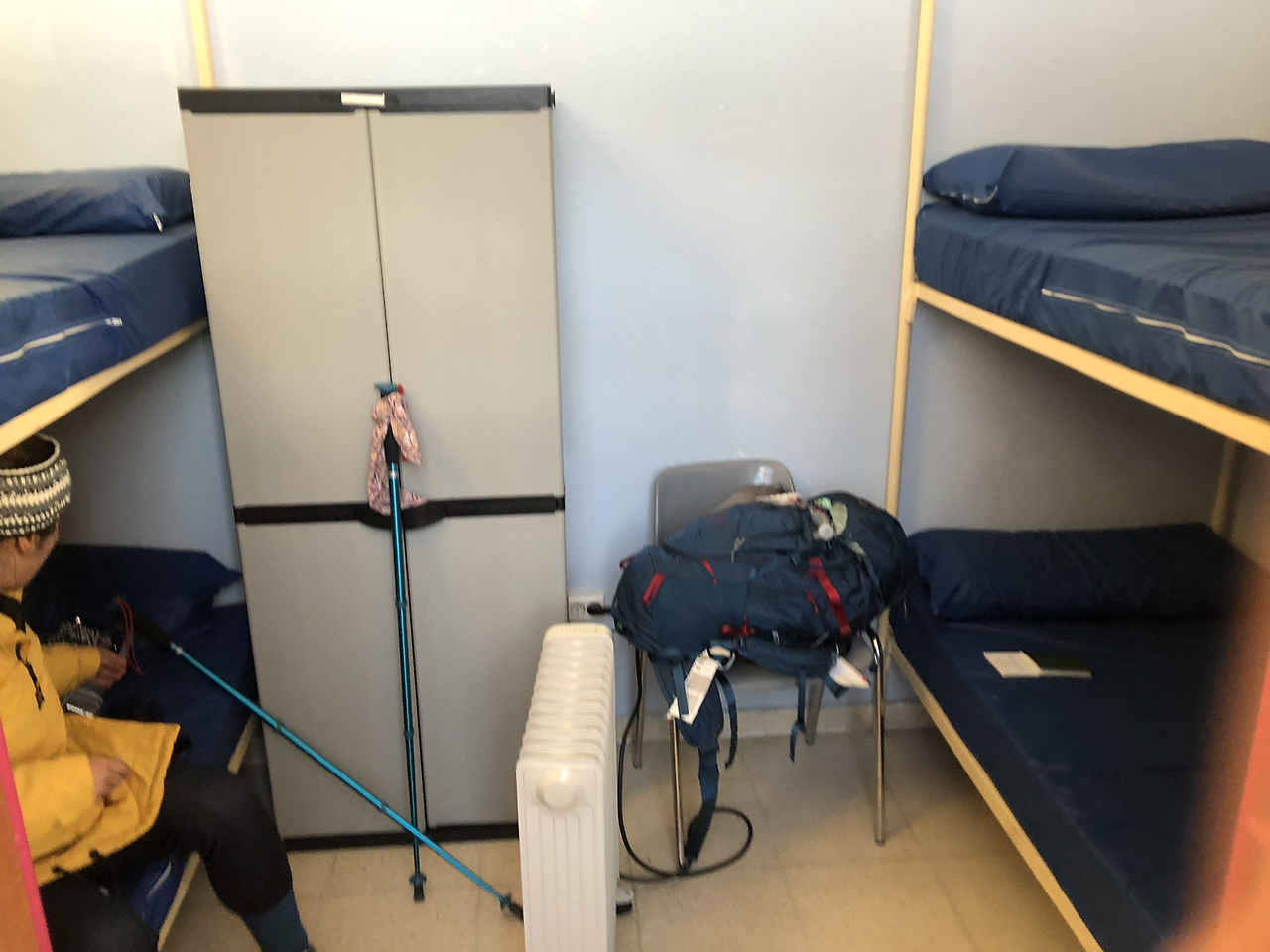 배정받은 방은 4인실이였고 문 위쪽으로 열려져있어 참 바람이 방으로 지속적으로 들어왔다. 방안에는 작은 라지에이터 뿐이라 도움이 될 것 같진 않았다. 아무래도 오늘 밤은 아주 춥게 보낼것 같은 예감이 들었다. 한 시간쯤 뒤에 알베르게를 지키고 계셨던 분은 몇가지 안내 사항을 알려주고 퇴근했다. 방안에서 모포를 두루고 있어도 너무 추워 식당 쪽에 난로 앞에 방 에이미와 붙어 있다가 오후 8시가 되기도 전에 눈이 감겨 다시 추운 방으로 돌아가 몸을 뉘였다.