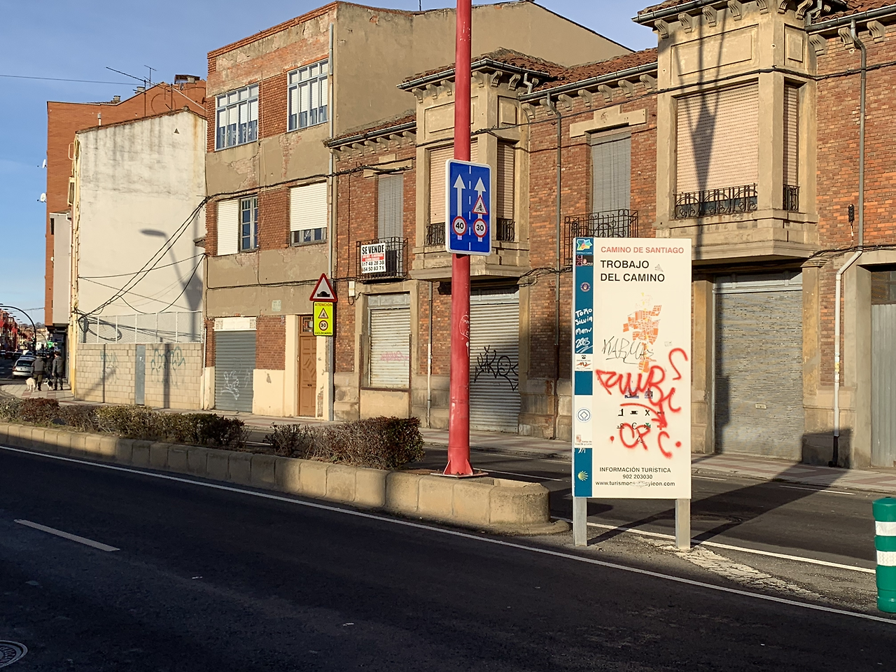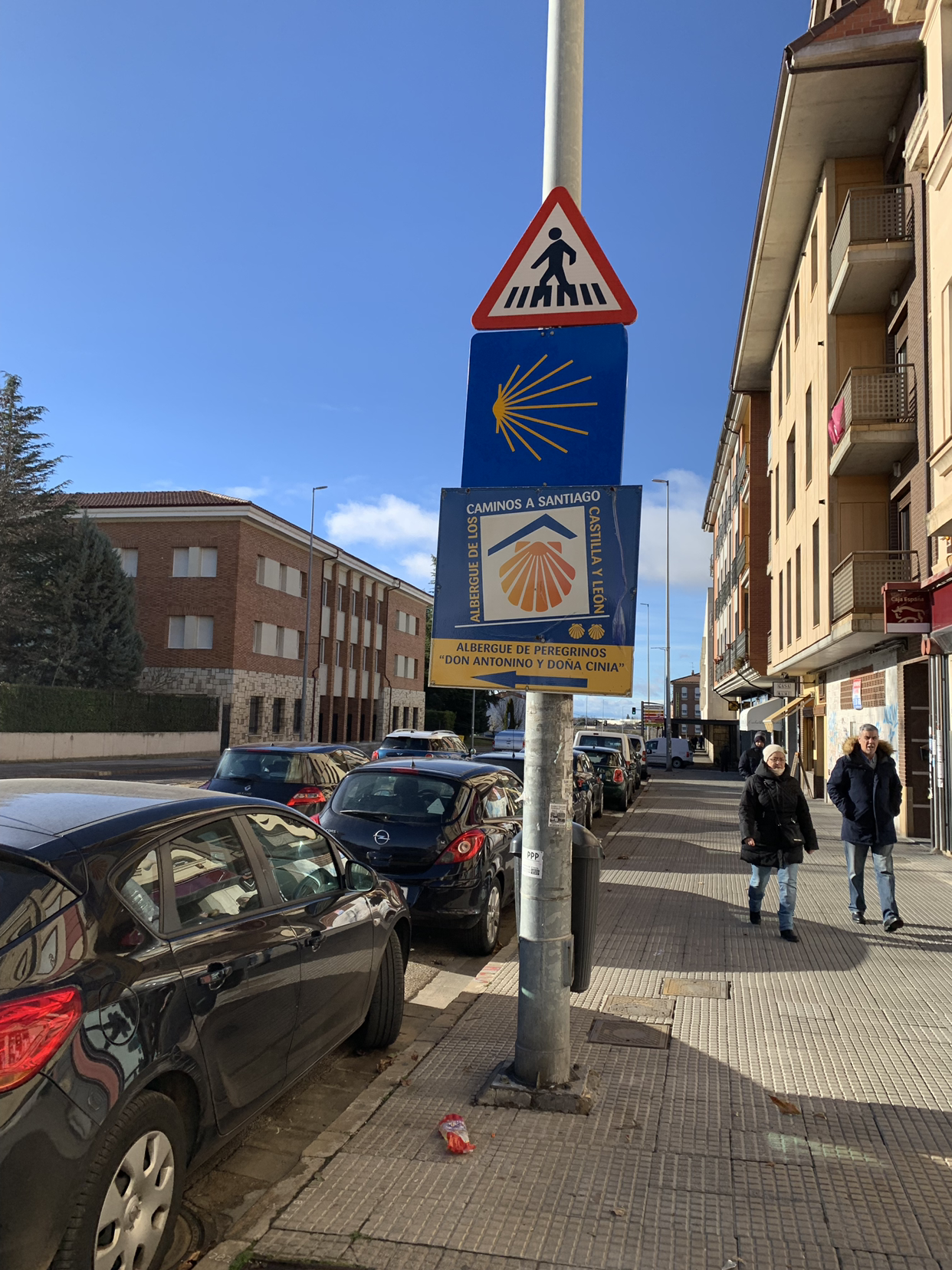 걷다보니 이제 레온을 빠져나온듯 길가 주변에는 띄엄띄엄 상가가 있었다. 얼마 걷지 않았다고 느꼈을 때쯤 도착한 도시, 우리는 다음 도시에서 쉬기로 하고 순례자 여권에 도장만 받기로 했다. 어디서 받아야할지 몰라서 이 도시에 있는 알베르게에 찾아갔다. 코스에서 벗어나 10분쯤 걸어갔는데 도장이 못생겨서(?) 실망했다. 다시 돌아나와 코스로 다시 진입했다.