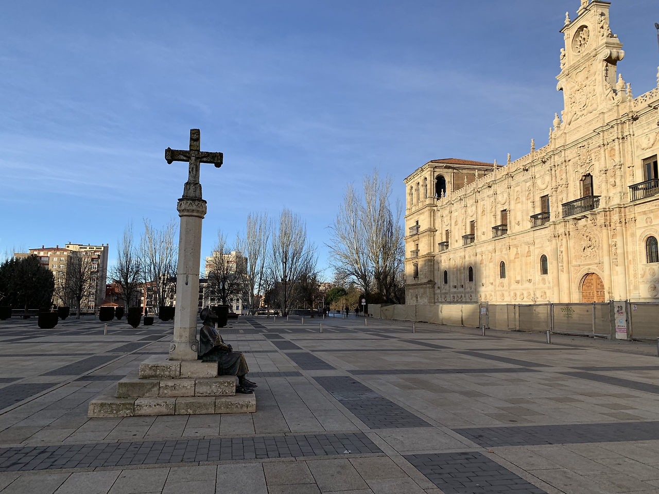 걸어가던 길 성당앞에 순례자 동상이었었는데 그 동상은 미니크로스백를 들고 슬리퍼를 신고 있었다. 할어버지가 신발과 가방을 자꾸 치면서 뭐라고 하는데 결국 눈치껏 순례자의 가방은 이렇게 작고 슬리퍼를 신었는데 너희는 큰 배낭과 단단한 등산화를 신고 있다라고 말하는 것 같았다. 이제 그만 이야기하고 싶어질때쯤 (사실 대화가 거의 되지 않음) 다행히 한 마트 앞에서 호세와 헤어졌다. 호세는 우리의 이름을 불러주며 손등에 뽀뽀(왜....)를 했다.