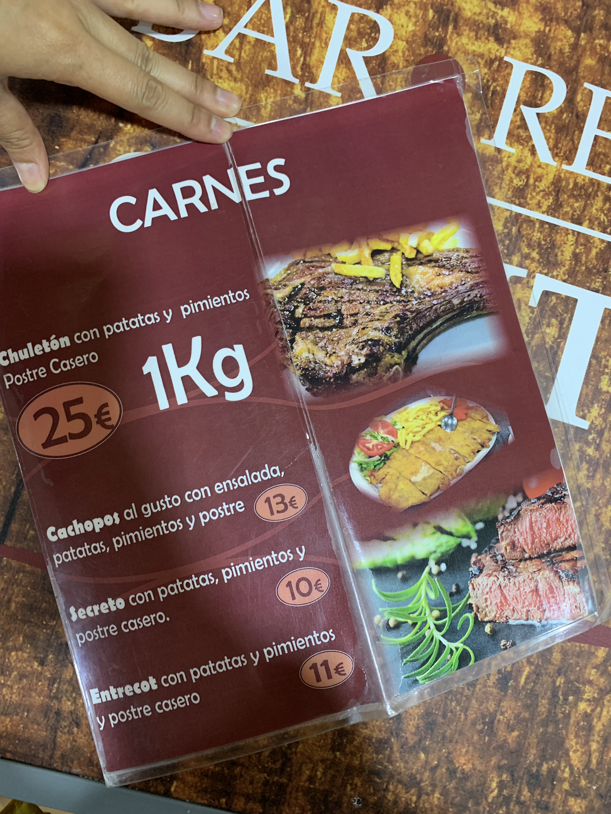 자리를 잡고 가방을 내려놓으니 차가운 공기에 닿은 등이 빠르게 서늘해져서 소름이 돋았다. 어이구 소리를 내며 자리에 앉아서 맥주 한잔과 오렌지 주스를 시켰다. 식사는 메뉴판에 있는 그림을 가르쳤더니 스페니쉬로 한창 이야기 하는데 뭔소린지 모르겠어서 계속 그림을 가르치니 주방으로 사라졌다. 제대로 시킨거겠지?