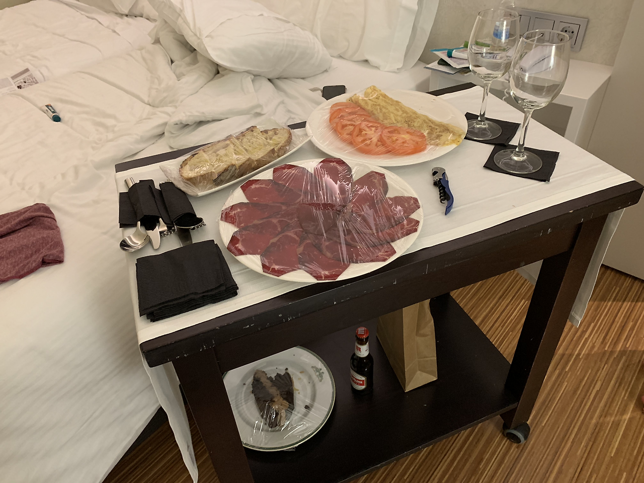 음식을 먹으며, 오늘 하루에 대해서 이야기 나눴다. 오늘 하루 호텔을 예약하지 않았다면 절대 아스또르가까지 29km를 걷지 못했을 것, 일주일간은 다시 이렇게 무리해서 걷지 말 것, 내일 아침 일어나서 상태를 보고 다음 목적 도시를 정하자고 했다.