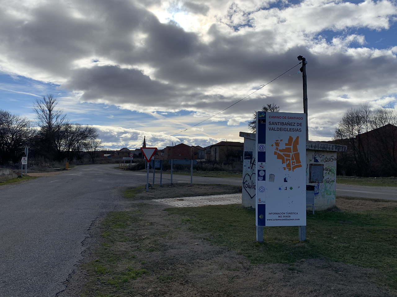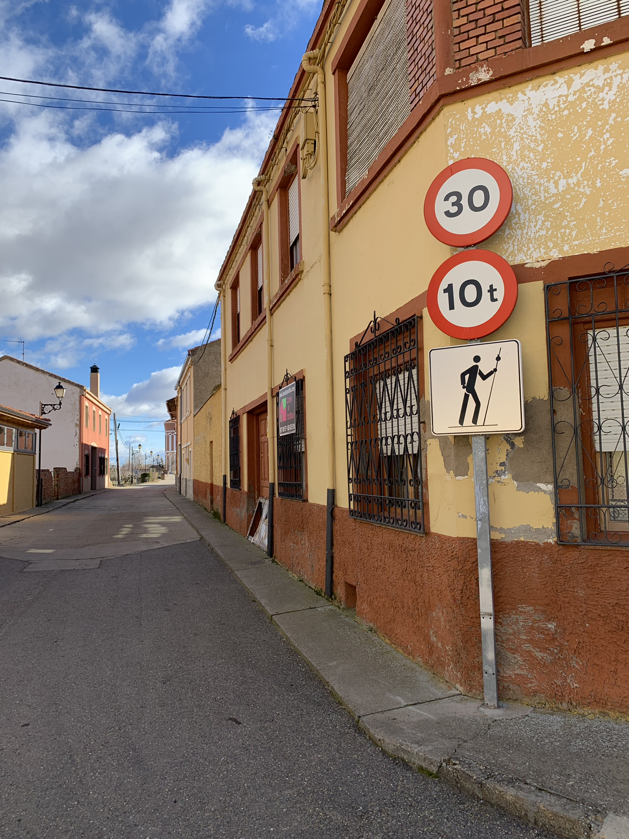 바람을 타고 옅은 거름냄새가 났지만 시야에 걸리는데 없이 펼쳐지는 전원 풍경에 발걸음이 힘이 실렸다. 이쁘다라는 말이 자연스럽게 입밖으로 새어나왔다. 산 마르틴 보다는 큰 마을처럼 보였는데 사람이 보이지 않았다.