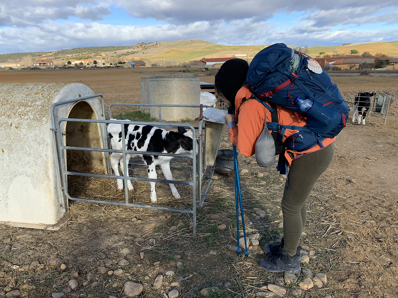 2시간 정도 걸아야 도오스삐딸 데 오르비고에서 도로를 따라 쭉 직진했다면 바로 도착했을 도시 산 후스또 라베가를 방향을 잡고 걷는데 시작부터 완만한 언덕길이 나온다. 쉬엄쉬엄 쉬지 않고 걸어올라가는데 거름냄새가 느껴져 고개를 들아보니 젖소 농장이 있었다. 태어난지 얼마 되지 않은 아기젖소랑 인사도 나누었다.