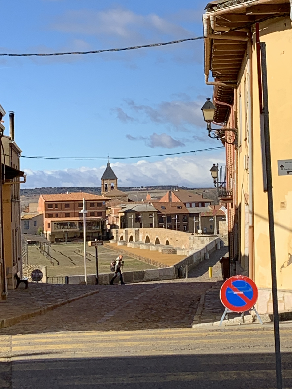 어제 오늘 걸으면서 우리를 뺀 순례자들을 보지 못해서 에이미가 아침부터 오늘은 꼭 순례자를 봤으면 좋겠다고 했는데 저 골목 끝 배낭을 밴 남자가 두리번 거리는 것을 발견했다. 나와 에이미는 마치 지인을 만난 것처럼 방가워 소리를 쳤다.(물론 그에게 우리의 소리는 들리지 않았다) 다리를 건너 레스토랑을 찾았다. 슬슬 배고플 시간이었다.