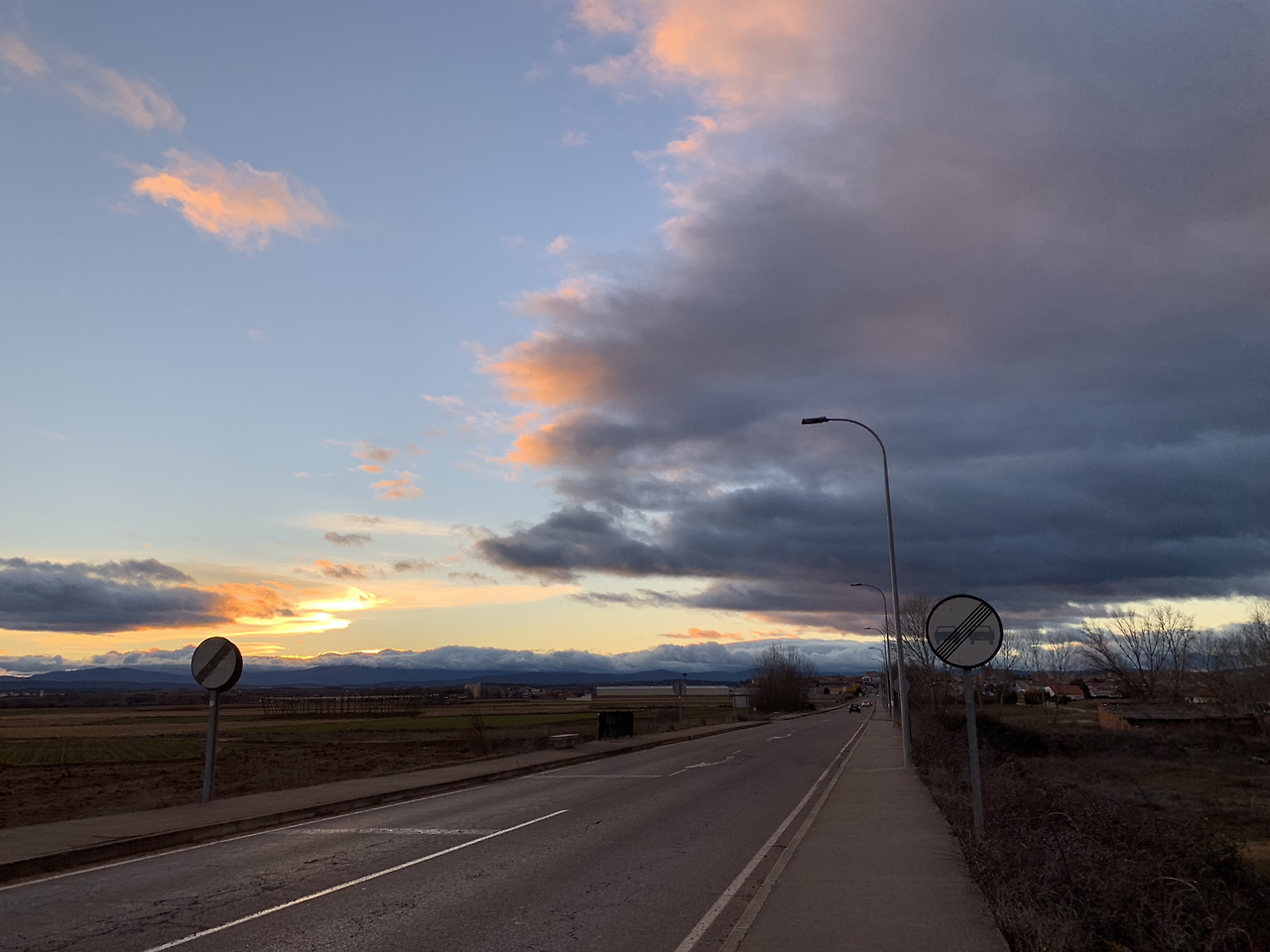 하늘은 더욱더 아름답게 바뀌고 있는데 바로 눈앞일 것 같은 아스또르가는 가까워지지 않는 것 같다. 길을 바꿔 밭 옆으로 한창 걸어가는데 거름을 뿌린지 알마되지 않은건지 냄새가 심각하게 고약했다. 빠른 걸음으로 빠져나가려 해도 발의 속도는 나의 마음의 속도와 달랐다.