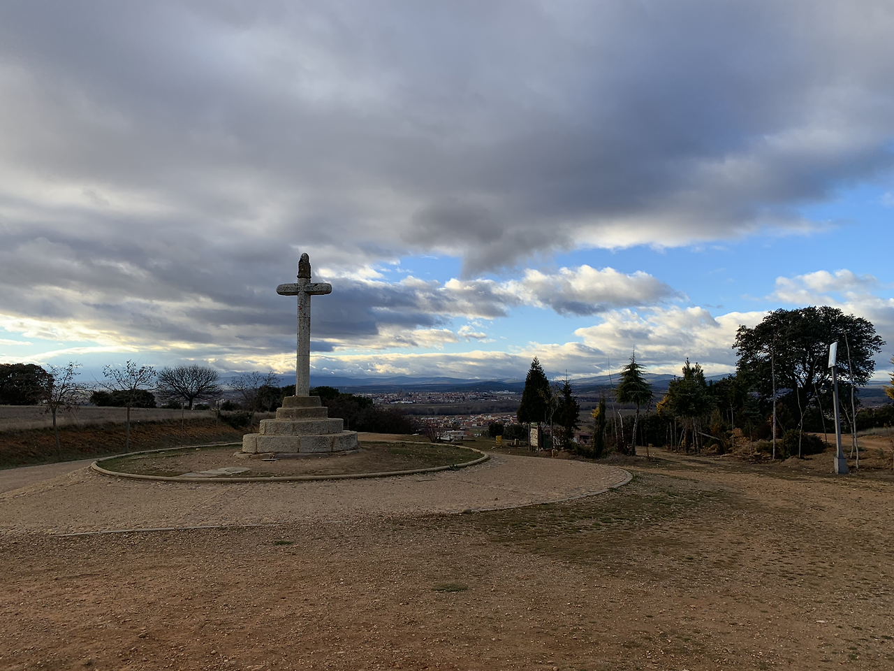 바닥에 주저 앉아 5분쯤 쉬었을까. 존은 먼저 출발하겠다고 나섰다. 아스토르가에 숙소를 아직 잡지 않아 빠르게 가고 싶다고 했다. (어디선가) 다시 보자, 인사를 나누고 그는 빠른 걸음으로 사라졌다. 우리는 조금 더 쉬다가 내리막길로 내려갔다. 다시 길게 이어진 평야와 포도밭 길의 언덕을 오르락 걷다가 중간중간 누군가 오와열을 맞춰 심어놓은 자작나무들을 보며 감탄했다. 에이미가 틀어놓은 음악에 맞추어 속도를 맞추어 걸어나갔다. 길게 뻗은 길이 끝나자 그 끝에 십자가가 있었다. 사진 속에서 본 십자가. 그 뒤 언덕 아래로 산 후스토 데 라 베가와 그 뒤 최종 목적지 아스또르가가 보였다.