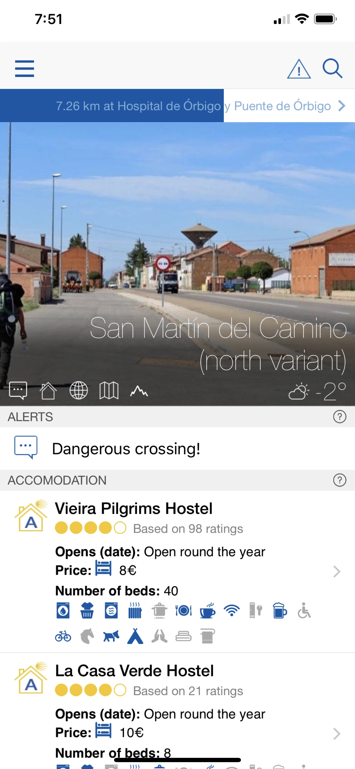 커다란 언덕을 하나 넘고나니 저 아래 마을이 보인다. 그리고 아까 점심때 먼저 출발한 브라질 커플도 보였다. 마을로 들어가 눈에 보이는 벤치에 앉아 쉬었다. 여기서도 다음 도시까지 도로를 따라 가는 방법과 그대로 평야 사이의 길을 가는 통로가 있는데, 이왕 여기까지 온 거 그대로 가기로 했다. 도로를 따라 걷는 것은 너무 지겹기도 하고.