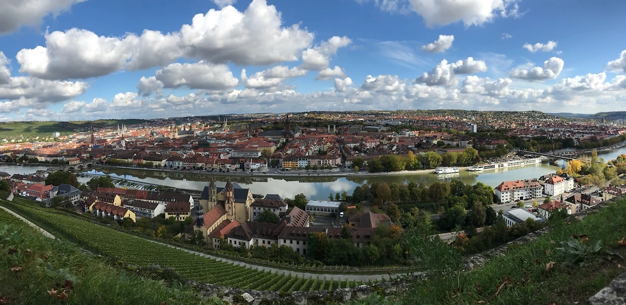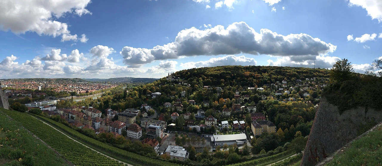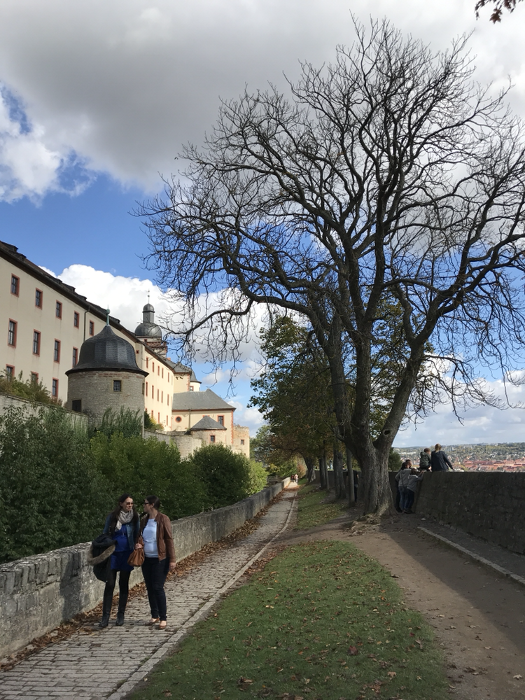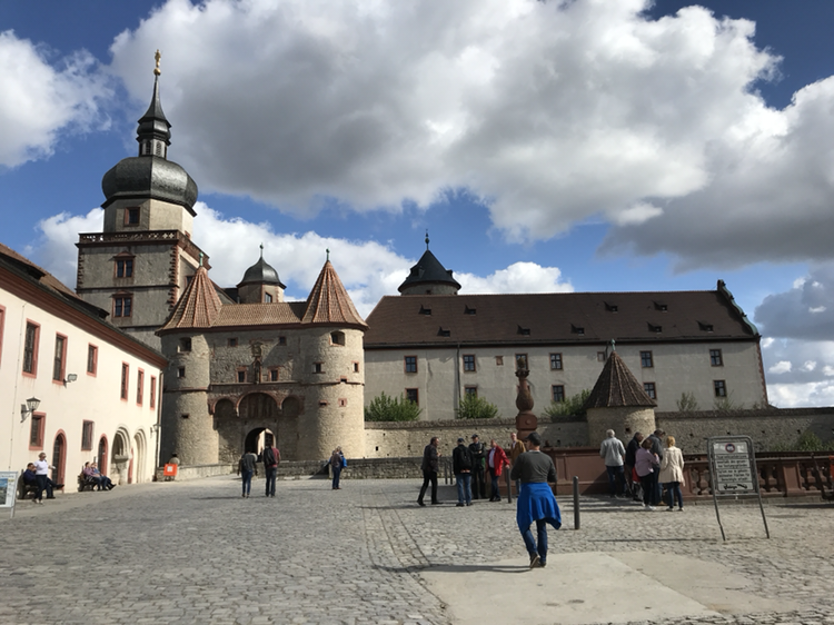 더 이상의 오르막길이 없다고 생각이 드는 정상에 성이 있었다. 읭? 이 성은 아까 마인강 건너편에서 바라보던 언덕위의 마이렌베르크 요새였다. 이 요새 우측으로 저 멀리 화려해보이는 발파르츠 교회가 보인다. 아.. 애초에 구글지도에서 이 요새라고 생각했던 위치는 지금 저 멀리 저쪽에 있던 교회였다. 오후에 오려던 이 요새에 착각해서 와버린 셈이었다. 성 내부로 들어 들어가니 공사중이었다.