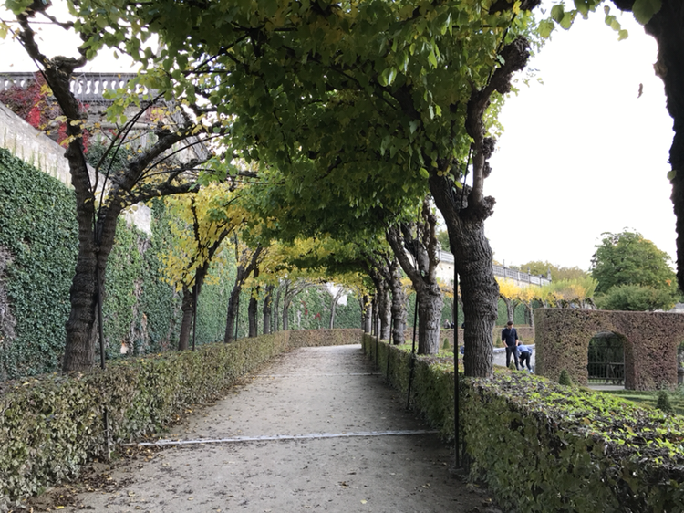 역시 가방이 가벼우니, 발걸음도 기분도 신난다. 아무래도 내일부터 예정이었던 모든 짐을 어깨에 짊어지고 하는 여행은 전폭 수정되어야하는게 아닐까 하는 생각이 든다. 나무로 가득찬 공원의 길을 따라 걷다가 성에 가까이 오자 벽을 따라 담쟁이 넝쿨이 너무 아름답다. 사진을 한장 찍어야겠다 생각을 하고 비장템, 삼각대셀카봉을 세우고 포즈를 잡으니, 사람들이 신기한듯 쳐다본다. 민망하니까 후다닥 사진을 찍고 성 뒤편에 문으로 들어갔다. 어? 이게 뭐지? 엄청나게 잘 엄청난 규모의 잘 정돈된 정원이 나타났다.