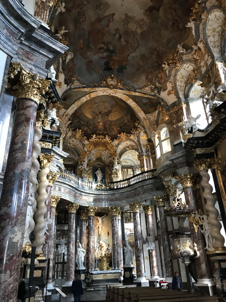 그 길로 올라서니 관광객들이 좀 보인다. 관광객들이 들어가는 길을 따라 내려가니, 하.. 드디어 도착했다. 아까 갔던 성보다는 훨씬 규모가 작았다. 멀리서 보는게 더 멋지군, 아까 그러니까 이곳을 바라보았던 건너편 성을 바라봤다. 흠...다리건너에서 바라보는 광경이 더 멋지군. 교회안에서 파이프 오르간 소리가 들린다. 문을 열어 안으로 들어가니 소리가 멈추었다. 아까 성에 화려함에 비해서는 소박(?)하지만 여기 또한 종교적 숙연함을 주기에 충분히 화려하고 웅장했다. 잠깐 서성대고 있으니 파이프오르간 소리가 실내를 가득채운다. 오래된 건물의 특유한 냄새에 음악까지 완벽한 유저경험이다!