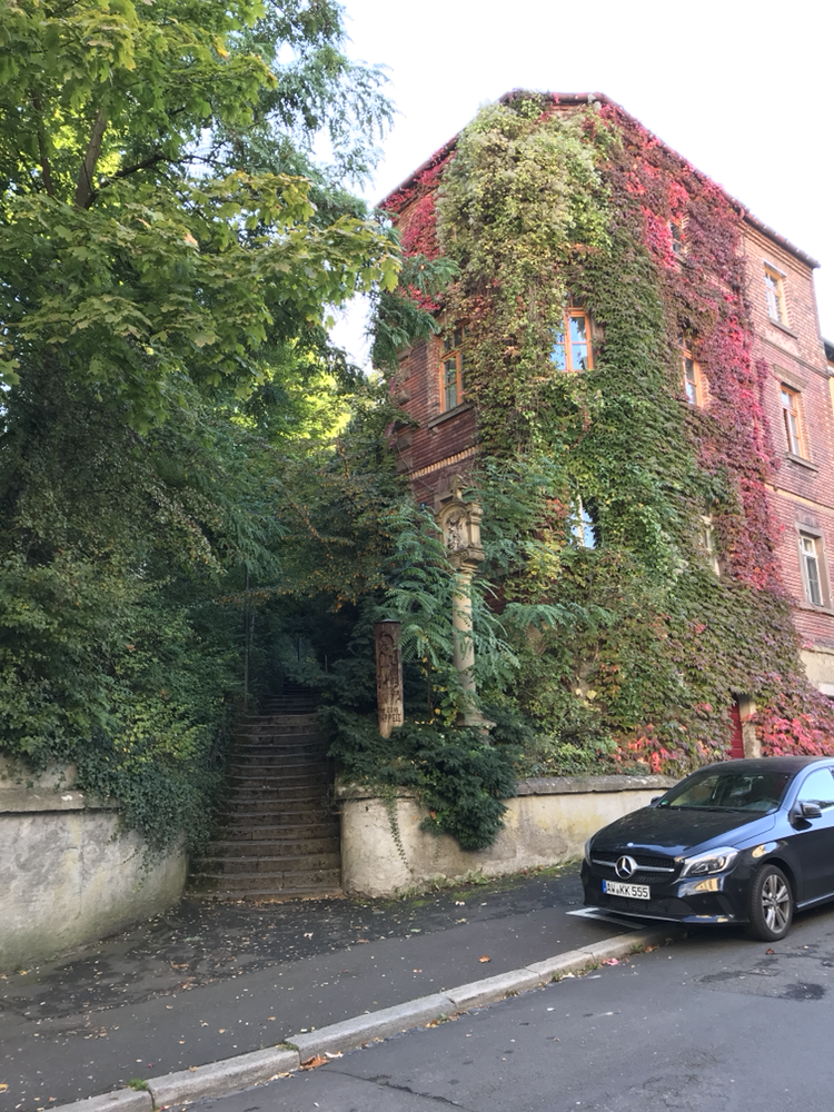 다리를 건너 관광객이 아무도 없어보이는 길을 지나, 지도의 안내에 따라 큰 길가에 이어져있는 좁은 길앞에 마주 섰다. 도대체 구글은 이런길들을 어떻게 아는거지? 한사람이 지나갈만한 골목길을 따라 계속 올라간다. 초록색이끼가 계단에 가득 끼었다. 계단 끝으로 올라갔더니 독일어로 뭐라고 쓰여있다. 뭐 대충 길 끝에서 오른쪽으로 돌라는 소리겠지, 이어져 있는 계단을 따라 다시 한번 끝에서니, 읭? 집과 집사이의 좁은 길사이에 내가 서있었다. 그 앞에 계단이 있는데, 그 잎에 있는 안내판이 심상치 않아서 검색해보니, 사유지 접근 불가 라는 내용이다. 하..구글아...다시 돌아 내려갈 자신은 없다. 좌우위아래를 슬쩍 살핀 후 두세계단씩 빠르게 올라갔다. 이런 막다른 길이다. 눈 앞 담벼락 건너편으로 성의 첨탑이 보인다. 다 온것 같은데 더워서 흐르는 땀 사이로 식은땀도 같이 흐른다. 좌측길로 몇걸음 걸으니, 좌측집 뒤편으로 아저씨 한번이 나를 쳐다보는데, 여긴 사유지라고 소리를 칠것 같다. 재빠르게 뒤돌아 이번엔 우측으로 걸으니, 다시 길이 나온다. 문앞에 철문을 조심스레 열고는 정상적으로 보이는 길로 올라왔다.