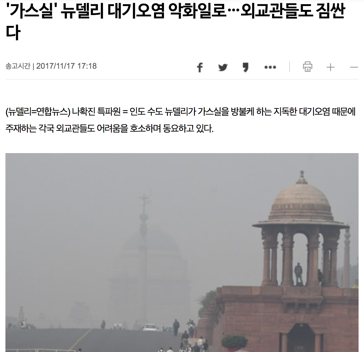 세번째 출장(?)온 11월 인도의 날씨는 한결 시원했지만 하늘이 심상치 않았다. 호수 근처에 물안개가 낀것 처럼 시야를 완전히 가릴만큼 공기가 좋지 않았다. 이건 "미세"먼지도 아니고 "대형"먼지들이었다. 한국에서 미세먼지가 심각하다 했을때도 마스크 쓰는게 귀찮지만 엄마의 잔소리때문에 겨우 쓰는 시늉만 했으나 여기서는 쓰지 않으면 안될 것 같은 경각심이 자연스럽게 들 정도였다. 그 걱정에는 대형 먼지들이 만들어 내는 퀘퀘한 냄새 또한 한몫 했다.