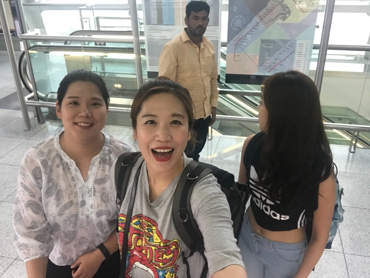 정돈된(?) 얼굴 상태로 짐을 챙겨들고 비행기에서 내리니 인도와 사뭇 다른 온도의 공기가 훅 하고 반긴다. 여름날씨라더니- 창밖으로 보이는 하늘이 깨끗한 파란 하늘이 아니라서 조금 실망스러웠다. 하지만 뭐 인도에 비하면야- 부지런히 발을 옮기는데 제시가 빨리 우리 숨쉬어요 라고 한다. 그래 두바이에서 숨쉬러 온거니까. 흡흡하하 소리를 크게 내고 숨을 쉬면서 깔깔댔다.