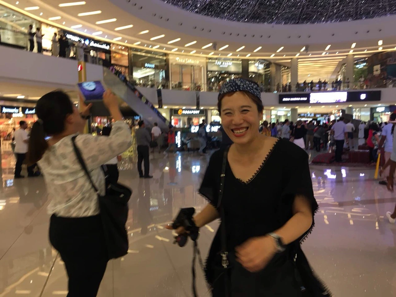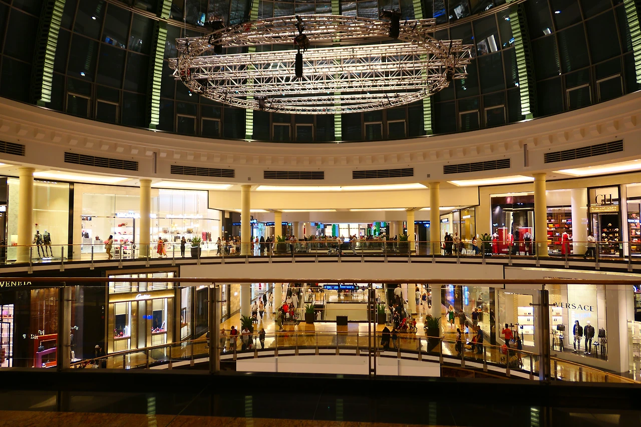지하철을 타고가다가는 그 순간을 놓칠 수 있을 것 같아 택시를 타자하고 우측에 있는 몰을 가로 질러 택시를 타러 이동했다. 택시를 타기 위해 입구를 향해 몰을 가로질러 지나가는데 크기가 어느정도인지 가늠할 수도 없을 정도였다. 노을을 놓치면 안된다는 마음으로 뛰어가면서도 몰 로비 천장을 화려하게 장식한 샹드리에와 로비 중간에서 전통의상을 입고 노래와 춤을 추는 사람들을 놓치지 않고 사진을 찍었다.