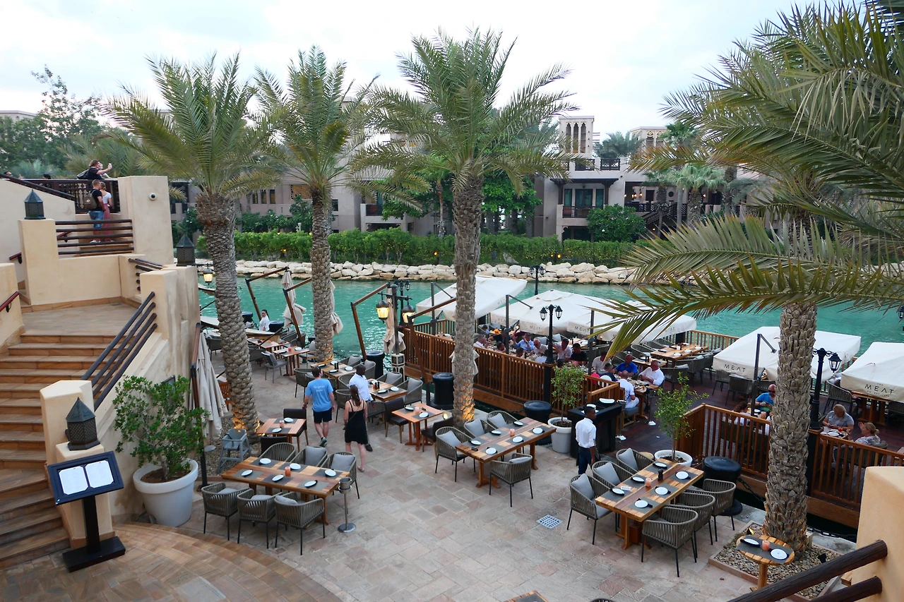 두바이의 첫끼를 그렇게 훌륭하게 마치고 밥집을 향해 걸어오면서 지나친 곳을 천천히 둘러보기로 했다. 그리고는 두바이몰을 방향으로 운하를 따라 걸어가기로 했다. 바닷가에서는 많은 사람들이 일광욕을 즐기고 파도를 즐기고 있었다. 바다 위에 출발드림팀에서 볼법한 장애물들이 떠있었고 많은 아이들이 그곳에서 놀고 있었다. 아 시간이 더 있었으면 해변에서 놀고 싶다고 얘기 나누면서 우리는 운하쪽으로 방향을 틀었다.