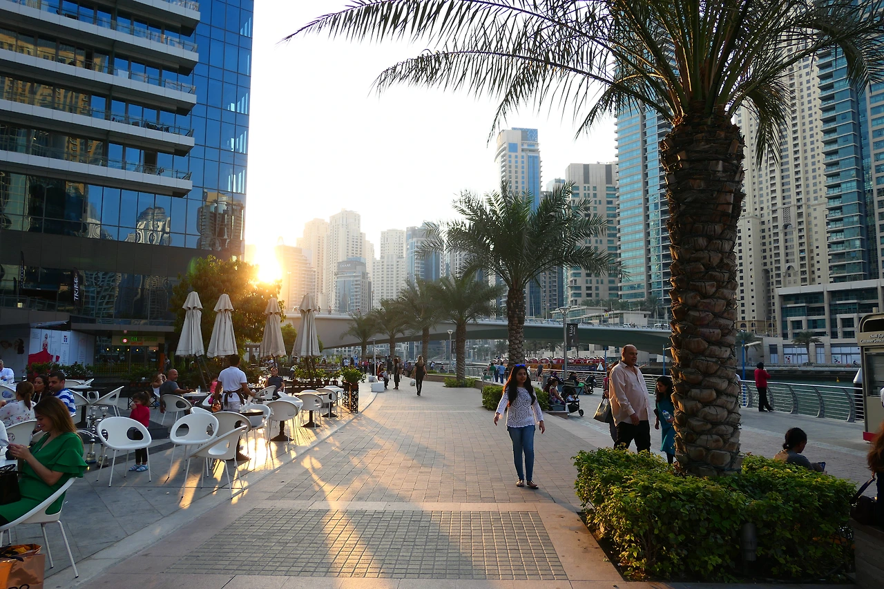 걸어가기로 예상했던 길의 반쯤 왔을때 주변이 슬슬 오렌지빛이 물들기 시작했다. 앗? 벌써 이러면 곤란한데 하는 마음에 해지는걸 어디서 보면 좋을까 하다, 마디낫 주메이라로 이동하자고 의견을 냈다. 그곳에서 버즈 알 아랍과 함께 바라보는 선셋이 멋있다라는 글을 어디선가 봤던것이 기억이 났기 때문이었다. 영과 조이가 생각보다 빨리 해가지니 서둘러야 한다고 미리 당부를 했건만 운하를 따라 길을 걷다보니 시간이 금새 지나버렸다.