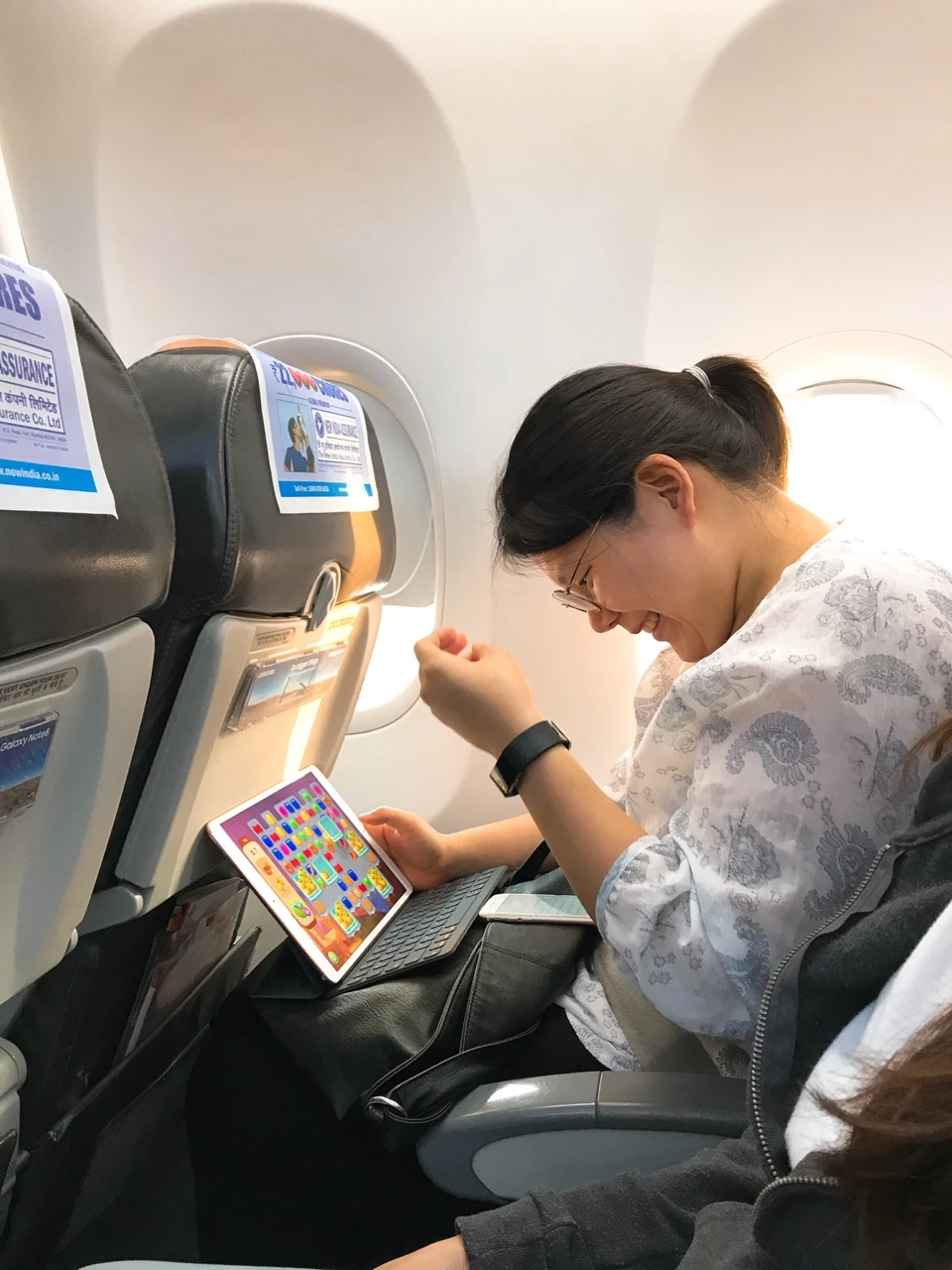'누구세요?' 제시가 집중하다가 주변을 살피다 화장으로 변신한 나를 보며 말을 건넨다. 착륙하기 20분전, 자다 깬 에이미도 서둘러 메이크업을 준비한다. 맨얼굴로 두바이에 발을 디딜 순 없으니까(?)
