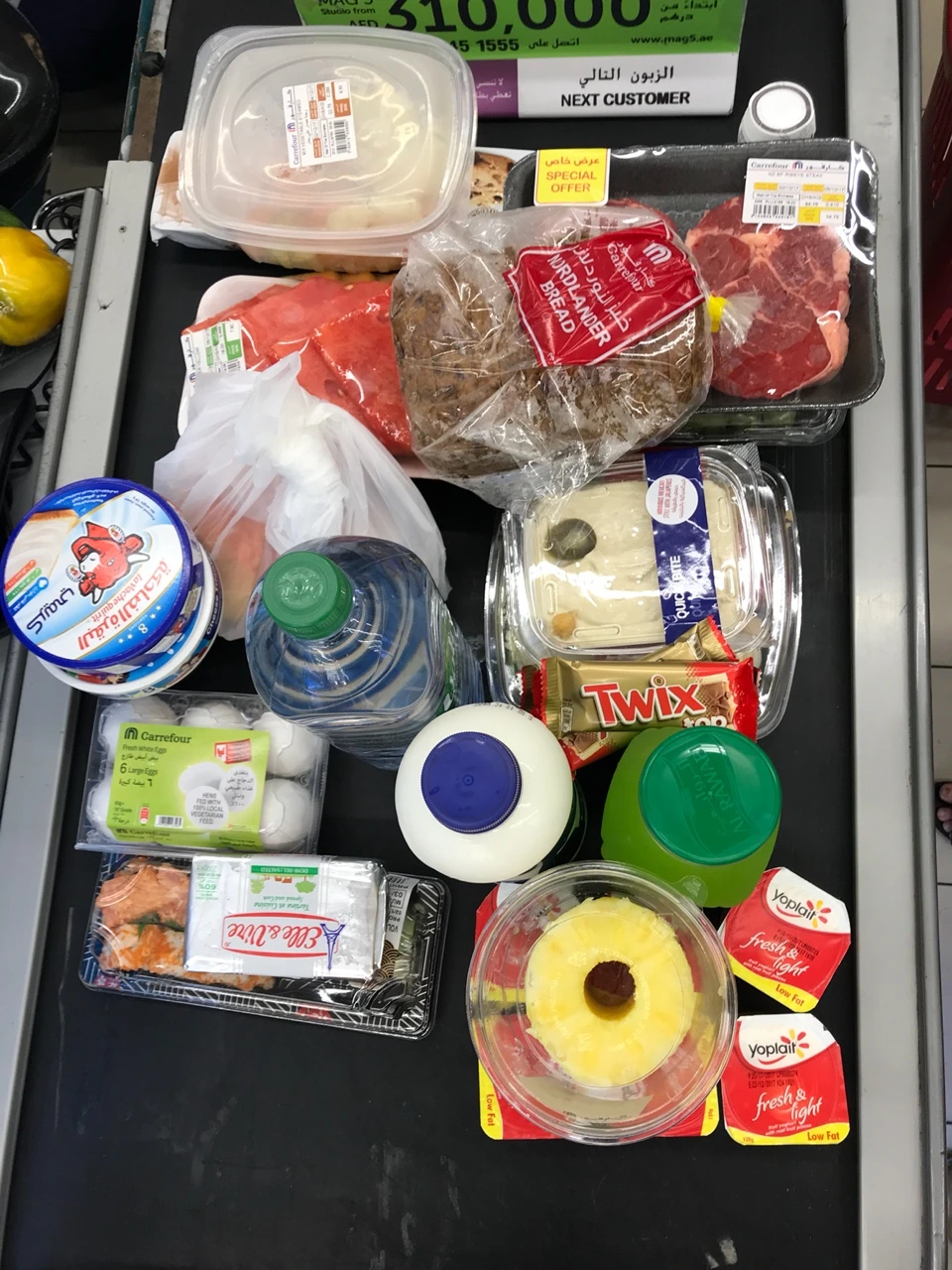 큰 규모의 까르푸가 바로 에밀레이트몰에 있어 어딘가로 이동할 필요도 없었다. 바퀴달린 바구니를 끌고 매장을 들어섰다. 저번 아부다비때처럼 각자 흩어져서 한참을 헤매는 일 없이 이번엔 단둘이라 앞서거니 뒷서거니 하면서 쇼핑을 했다. 조금만 삽시다를 반복하면서 호텔수영장 오픈시간안에 도착하기위해서 서둘렀다.