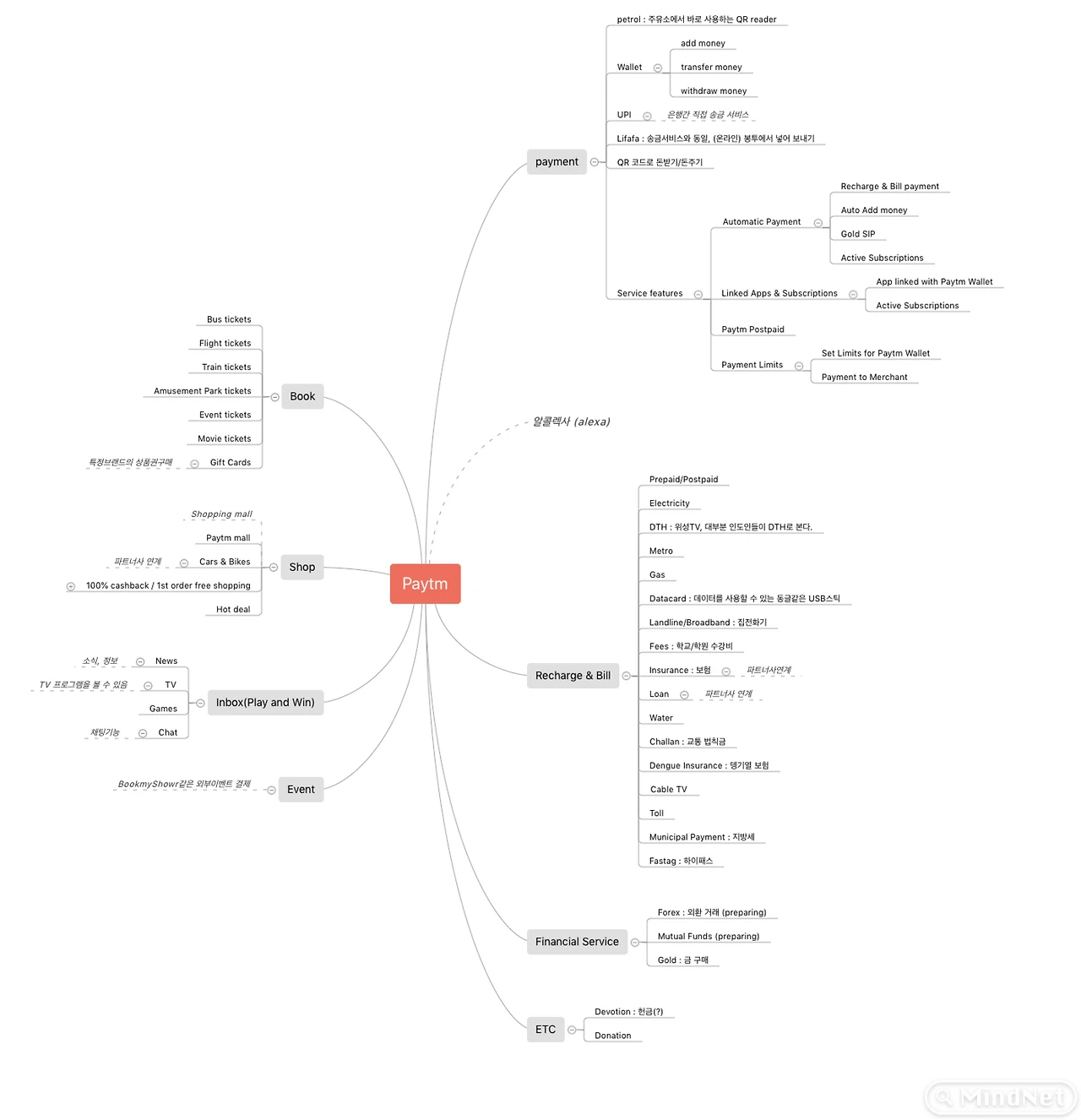 Pay through mobile의 의미를 가진 Paytm은 2010년에 만들어졌다. 만들어진 년도를 고려하면 상대적으로 굉장히 짧은 시간안에 인도 압도적 넘버원 페이먼트앱이 되었다고 할 수 있다. Paytm은 월렛서비스와 Paytmmall인 쇼핑몰을 가지고 있고 2015년에는 은행 자격을 취득해서 2017년에는 Paytm Bank를 오픈 했다. 같은 해에 캐나다에 진출해서 폰, 케이블, 전기, 인터넷, 수도 등 빌페이먼트의 제공을 시작했다.