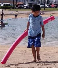 아들은 시큰둥했다. 그런데 아빠의 말이 예언이 될 줄이야. 신토불이 사나이가 스위밍 누들을 가지고 놀다가 놓쳐 버린 것이다. 아이는 흘러가는 스위밍 누들을 잡겠다고 한발 한발 걸어 들어갔다. 모래밭에 누워서 책을 보고 있던 나는 벌떡 일어나서 돌아오라고, 버려도 된다고 소리를 질렀다. 하지만 들리지 않는지 “엄마! 저거 떠내려가!” 하며 아이는 점점 멀어져 갔다. 나는 얼른 물로 뛰어들어갔다. 물속에서는 아무리 빨리 걸으려고 해도 속도가 안 난다. 게다가 빌어먹을 파도가 치면 걸었던 제자리로 돌아왔다. 순간 짜증이 밀려오며 심장이 타 들어가는 거 같았다. 그런데 어느 순간 아이는 뒤를 돌아보더니 돌아오기 시작했다. 스위밍 누들은 더 빠른 속도로 멀어져 갔다. 정말 십년감수했다.