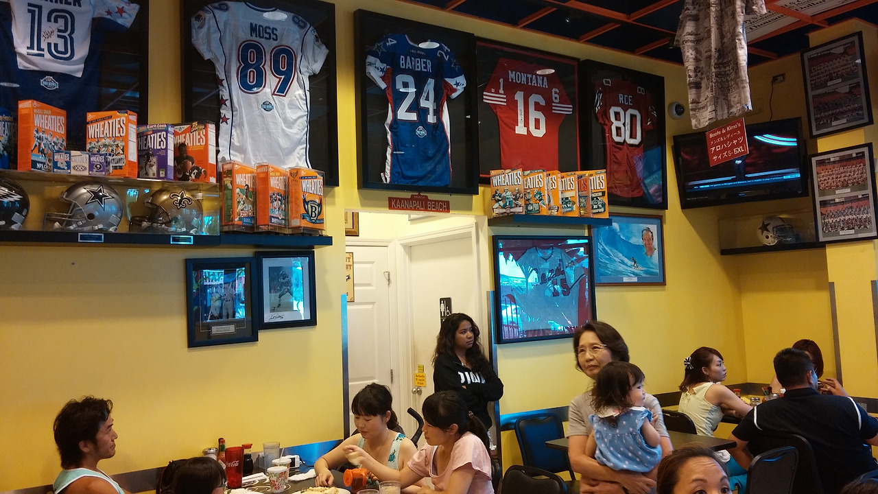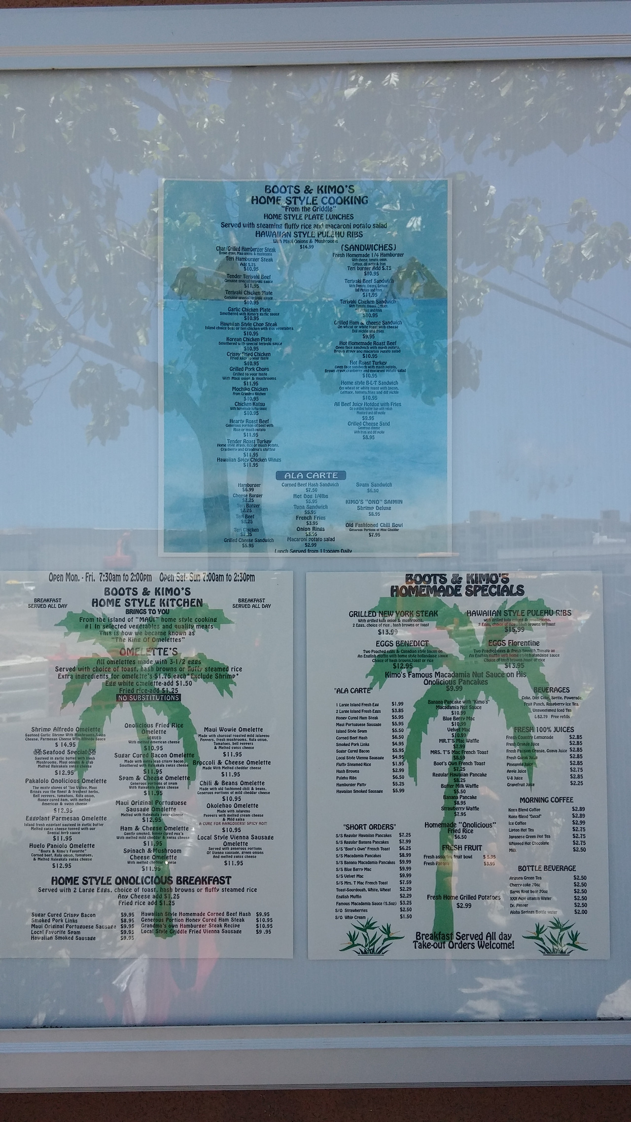 카일루아 비치 가는 길에 있는 Boots and Kimos는 하얀 마카다미아 넛츠 소스를 뿌린 팬케이크로 유명합니다. 보통 한 시간씩 기다려서 먹는데 to go (포장)할 경우에는 금방 준비가 되더라고요. 물론 식당 안에서 먹는 것이 좋긴 하겠지만 아이들과 기다리는 것이 힘들 때는 포장해서 카일루아 비치에 와서 먹는 것도 나름 운치 있어요.