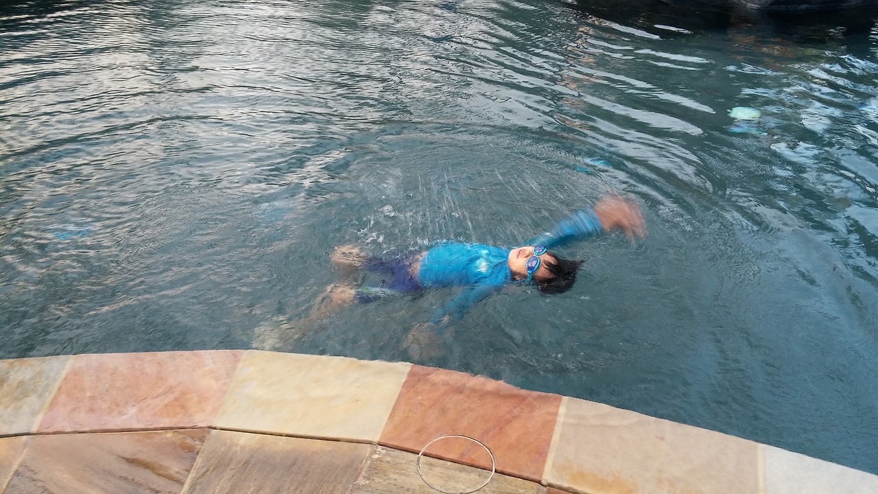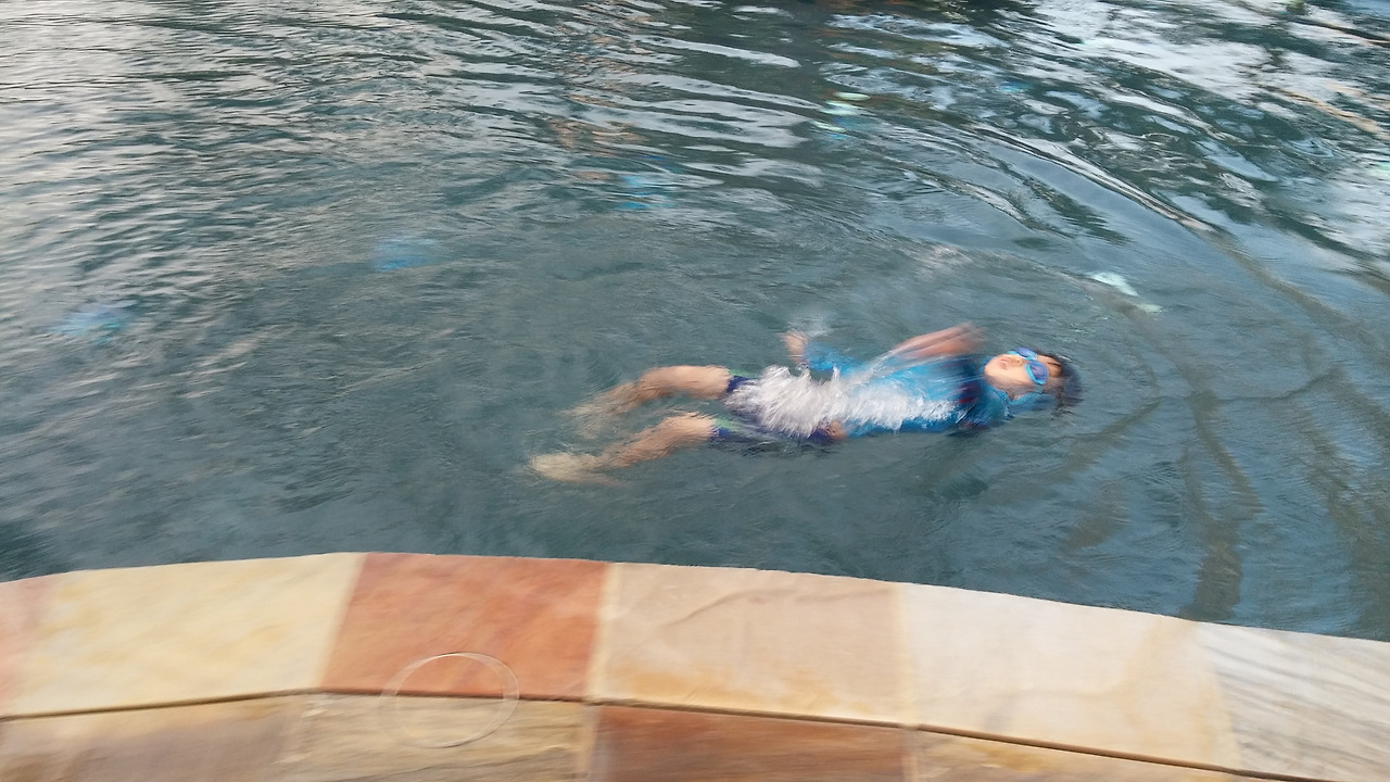 “Is he your son? I saw him last Friday in the pool. I was totally impressed by his swimming.”