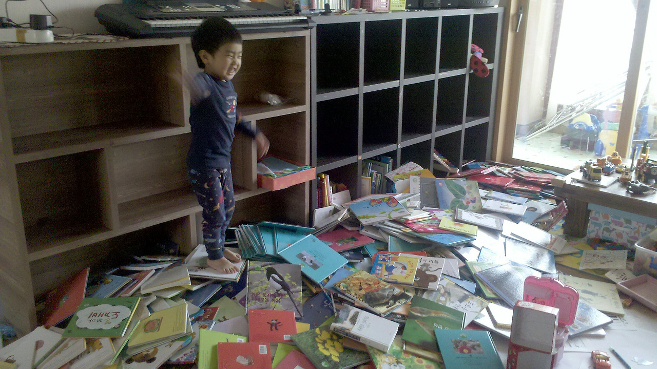책장 안에 있는 책을 한 권, 두 권 꺼내기 시작했다.