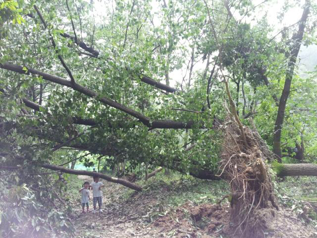 나무들이 통째로 뽑혀 날아갈 것 같았다.