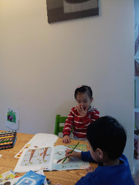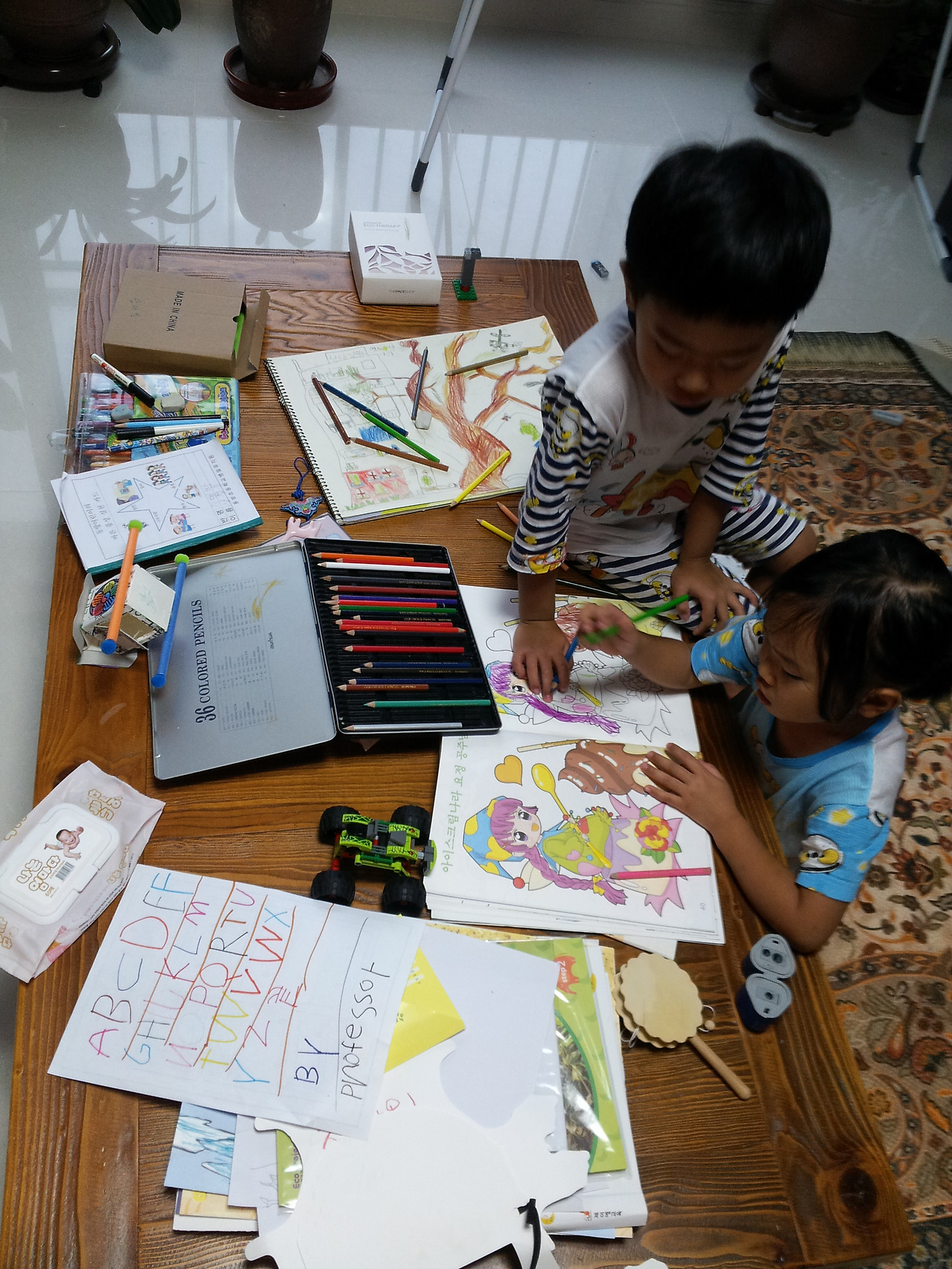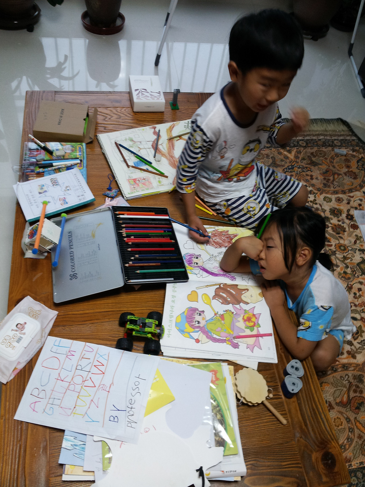 참고로 사진에 있는 엄청난 영어 알파벳은 남매의 작품이 아니다. 놀러 왔던 친구가 써 주고 간 역작