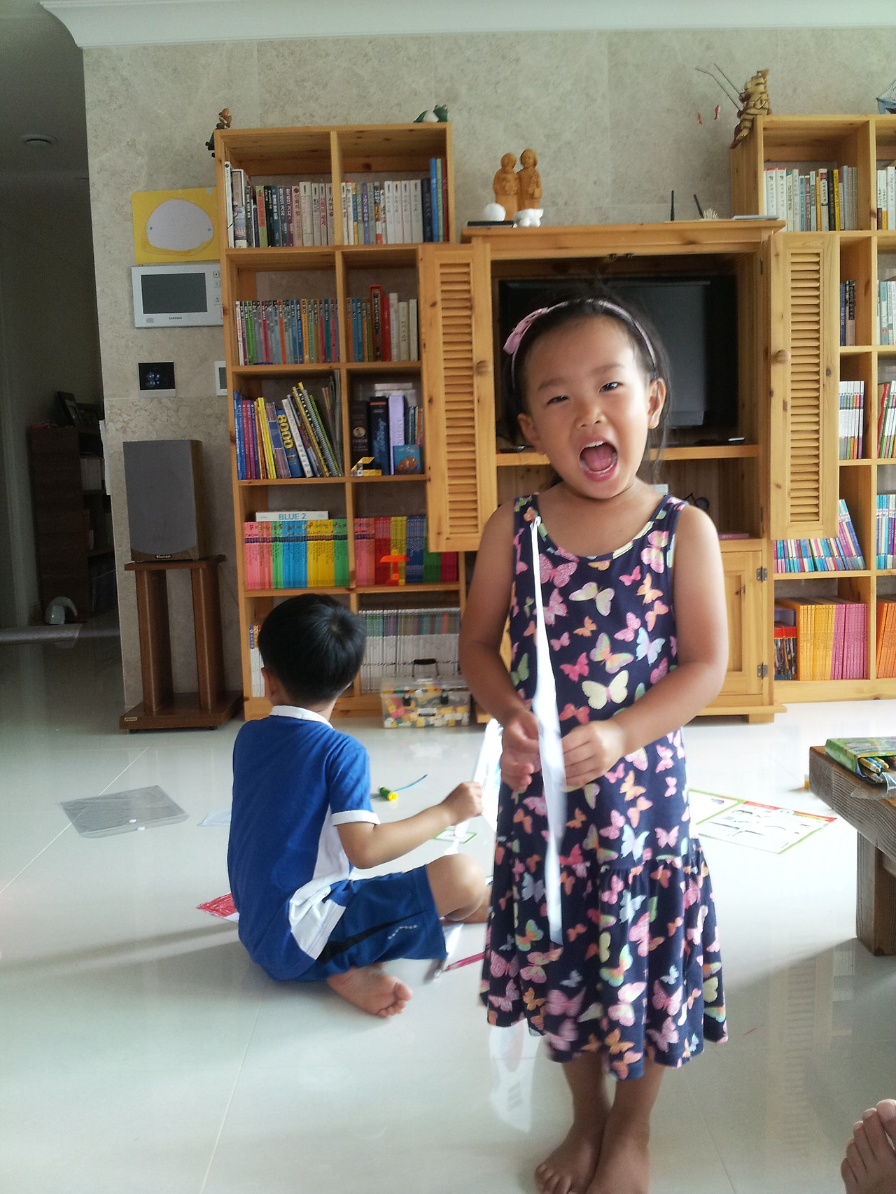색칠하고 오리고 붙이고 태극기를 완성하셨다.