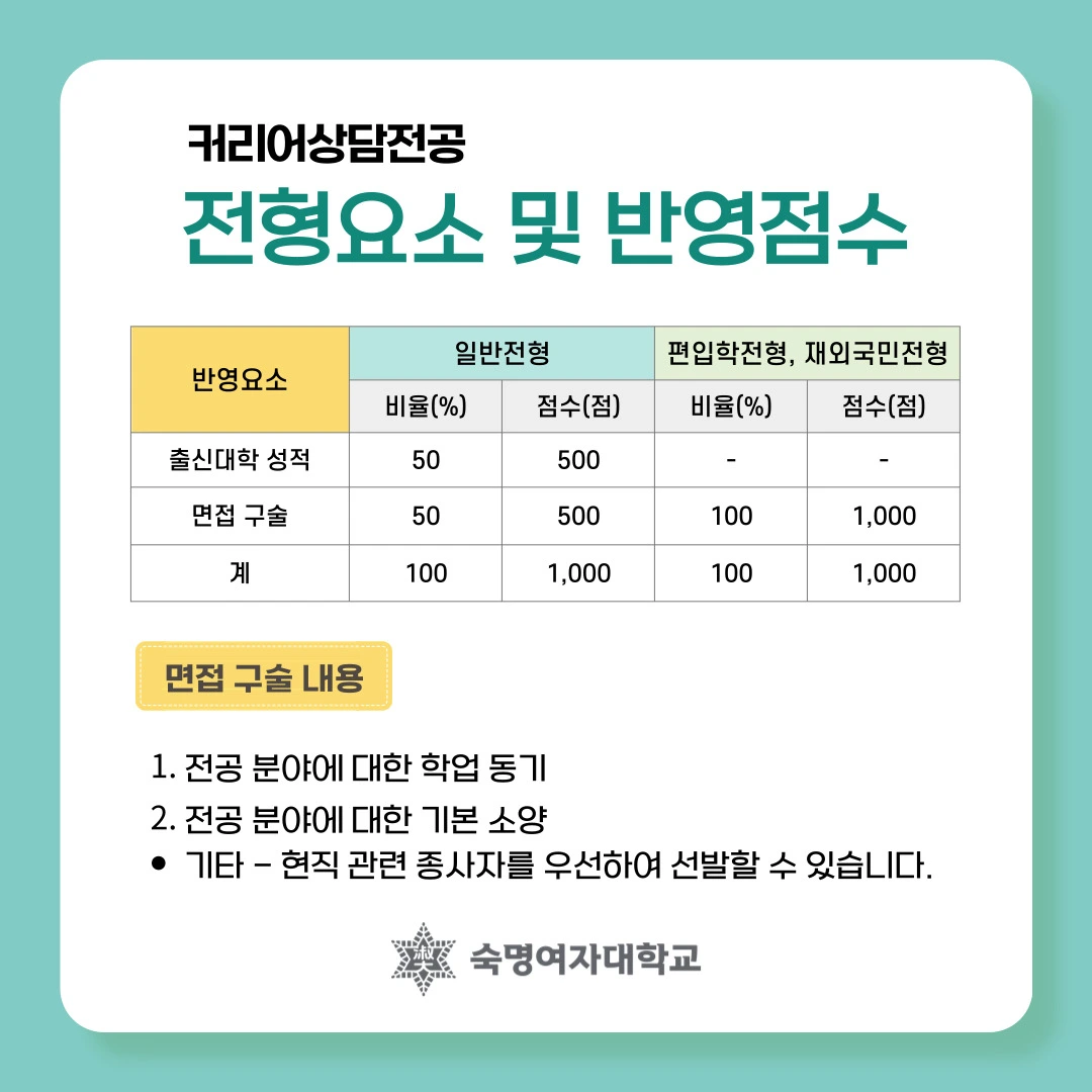 숙명여자대학교 커리어개발학과 커리어상담전공