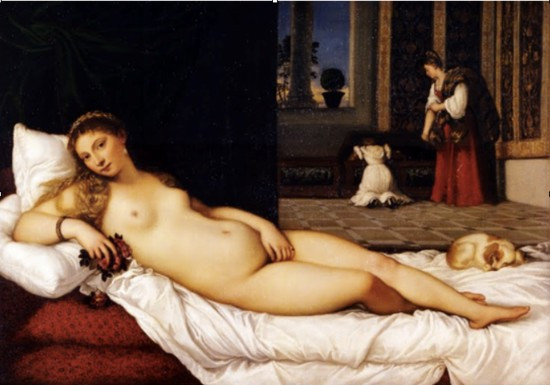 좌, 티치아노, <우르비노의 비너스> 1538 / 우, 마네, <올랭피아>, 1863