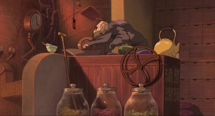 또한 미야자키 하야오의 작품에는 비행기나 기계적인 요소가 거의 대부분의 작품에 등장한다. 감독이 어릴 때부터 비행기를 좋아했기 때문이라고 한다. <바람 계곡의 나우시카>, <천공의 성 라퓨타>, <마녀배달부 키키>, <붉은 돼지>, <하울의 움직이는 성> 등에는 전투기, 비행기, 비행선 등의 물체가 등장한다. 비행기 외에도 <하울의 움직이는 성>에서 하울의 성은 증기를 내뿜는 기계적인 고철덩어리로 등장한다. 얼기설기 맞물린 톱니바퀴, 뜨겁게 달궈지는 엔진과 뿜어지는 증기의 이미지는 <센과 치히로의 행방불명>의 가마할아범의 보일러실에서도 찾아볼 수 있다.