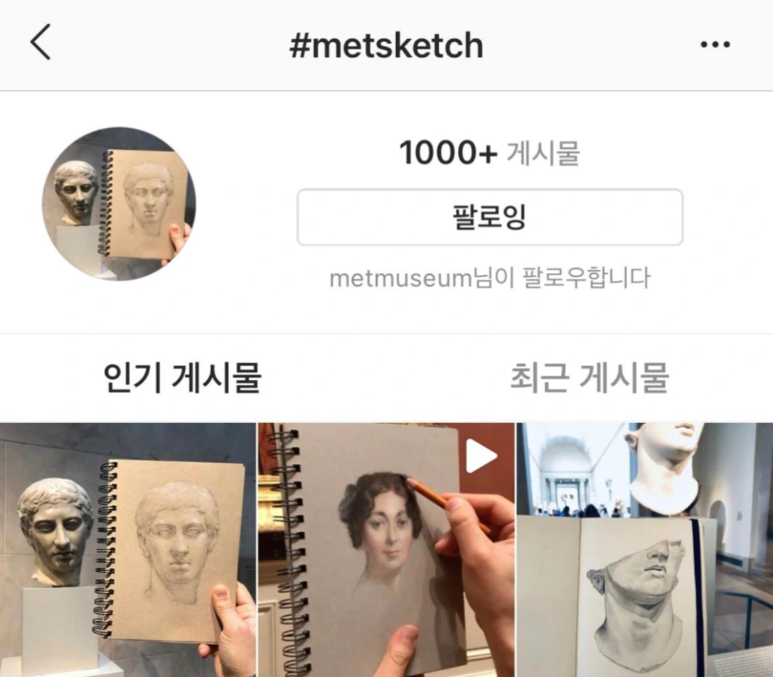 코로나 19로 인해 많은 미술관들이 일시적으로 문을 닫게 되면서 온라인 상의 활동은 더욱 활발해졌다. 나 역시 다양한 콘텐츠들이 올라오는 여러 미술관들의 계정을 팔로우하여 즐겨 구경하곤 했는데 그중 눈길을 끄는 해시태그가 있었다. #MetSketch는 메트로폴리탄 미술관에서 시작해 미술관의 여러 작품들을 직접 따라 그려 올린 게시물에 달리는 해시태그였다. 미술관의 작품을 그린 그림들을 보자 대학교에 갓 들어와 처음 들었던 미술사 수업의 한 교수님이 떠올랐다. 수업 중, 교수님은 작품을 감상하는 좋은 방법 중에 하나는 그 작품을 직접 그려보는 것이라고 말씀하셨다. 이 말이 인상적이었던 나는 과제를 위해 박물관에 갔을 때, 실제로 이 방법을 시도해보았으나 결국 그림을 그려내지는 못한 채 돌아왔다. 떠오르는 그때의 기억에, 이 해시태그에 대해 더 알아보고 싶어 졌다.