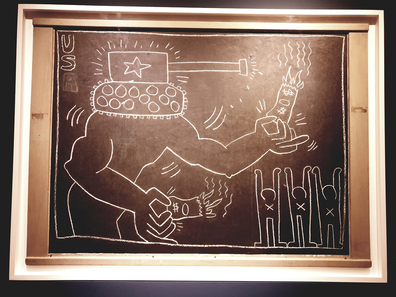 간단한 상상력을 동원하여 지하철로 출퇴근을 하는 와중에 누군가가 지하철 벽에 낙서를 하고 있다고 상상해보자. 그 자체로 평범하지 않은 사태로서인식될 것이며 누군가는 무관심한 행인으로, 누군가는 관객으로, 누군가는 경찰에 신고를 할 수도 있는 상황이다. 그런 다양한 사람들 사이 놓안 그림은 이미 많은 사람들을 향하고 있다. 누군가 지하철 벽에 그림을 그리는 것은 형식이나 내용 어느면에서도 예사로울 수 없다. 이후 "성공한" 거리미술가들은 담론과 대중에 의해 저항 정신의 민중 예술가라는 승인을 받지만 사실 그 당시 공공 장소에 그림을 그리는 행위를 한 그 당시에는 사회적 물의를 일으킨 규범 파괴자로서 위치했을 것이다. 정부의 탄압과 그런 정부에 대한 대중의 야유, 그리고 민중의 편에 설 것을 약속하는 예술가의 언어가 삼박자를 이루면서 하나의 사회적 이슈가 되고 그 자체가 하나의 문화가 되었다. 예술의 대중성이라는 측면에서 키스해링은 사회 운동가로서의 면모를 드러냄과 동시에 자신의 회화적 특성을 세상 곳곳에 심는 활동을 통해 그는 대중의 기억 속에서 유명해졌다.