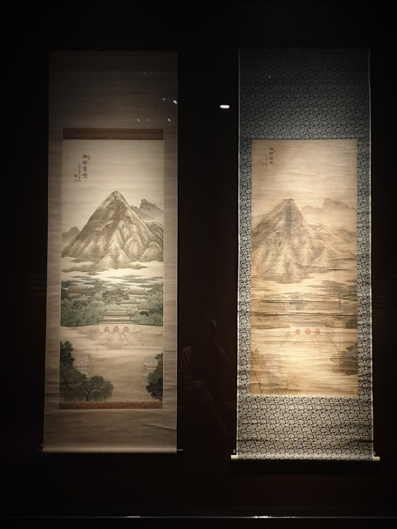 다음은 근대 서화가이자 미술계의 계승과 사회 참여를 주도했던 심전 안중식의 작품이다. 경복궁과 백악산, 그리고 해태상을 정면에 배치하여 나라가 건재했던 과거의 영광을 회복하고 싶은 마음을 느낄 수 있다. 특히 일제에 의해 박람회장으로 격의가 훼손된 경복궁의 기개를 되살리고자 '백악춘효'라는 이름으로 백악의 봄을 다시금 깨우고 싶은 의지를 담아내고 있음을 추측할 수 있다. 본 전시의 대표작품이자 전시의 주제를 아우르는, '봄 새벽을 깨우다'의 주인공이다.