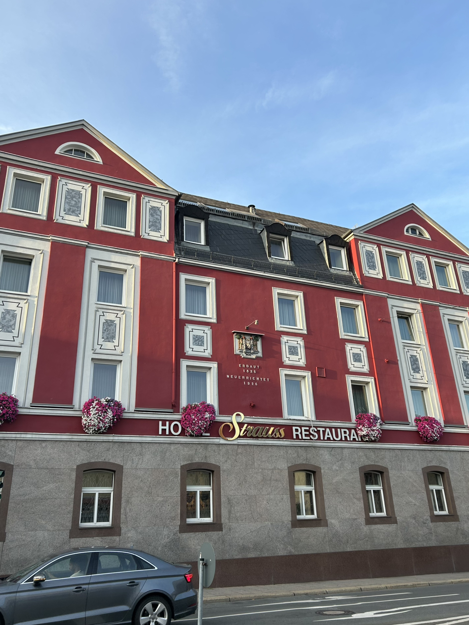 오늘 머물 숙소는 이름부터가 아주 예술적이다. 무려 ’스트라우스‘ 클래식 음악을 사랑하는 나라답게 거장의 이름을 따 왔다. 그의 불타는 예술성을 상징화 하고 싶었는지 호텔도 빨갛게 옷을 입혀놨다. 하지만 주변 다른 건물들도 죄다 지지 않는 듯 알록달록하니 도시 경관과 꽤나 잘 어울린다.