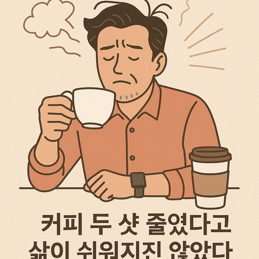 요즘 나의 하루는 아침부터 과속 중이다. 눈을 뜨기도 전, 오늘 처리해야 할 업무와 일정이 머릿속을 점령한다. 정신은 이미 10시 회의실에 가 있고, 감정은 아직 잠에서 못 깬 채 떠밀려 간다. 커피를 줄여봤다. 투샷에서 원샷으로. 혹시나 이 떨리는 가슴과 요동치는 생각이 카페인의 영향은 아닐까 싶어서. 하지만 하루는 여전히 빠르게 흐르고, 머리는 더 빠르게 달린다. 커피를 줄인다고 삶이 줄어들 리 없다. 오히려 덜 각성된 몸으로 더 많은 일을 버티게 된다.