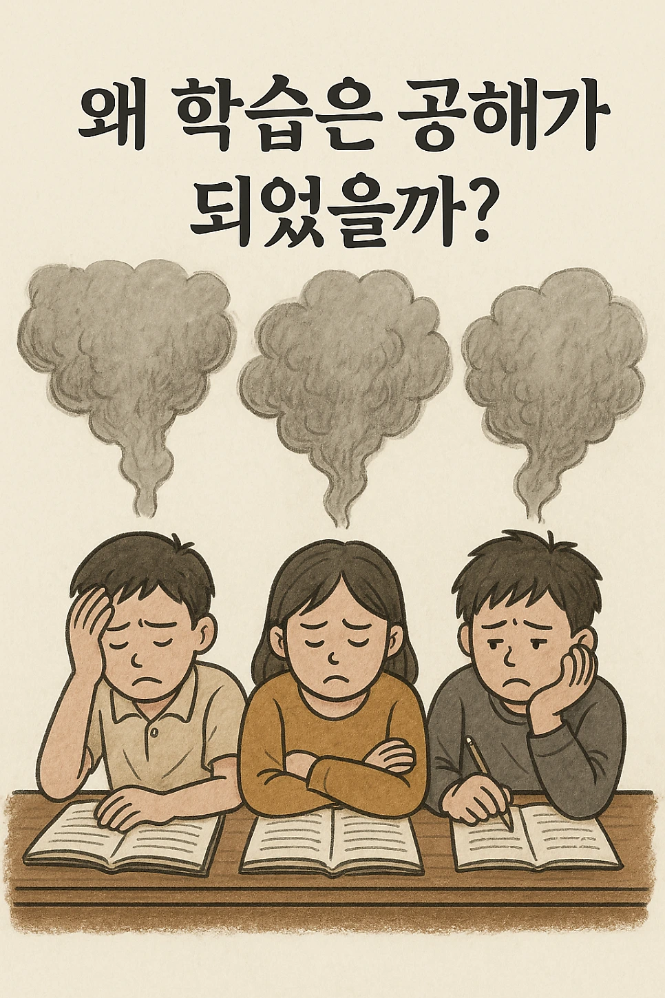 공해는 모두에게 피해를 주지만, 누구도 쉽게 책임지지 않는다. 지금의 학습 역시 그렇다. 학생은 불안 속에 경쟁하고, 교사는 수업보다 행정에 지치며, 학부모는 사교육에 의존하면서도 죄책감을 느낀다. 교육은 이제 삶을 풍요롭게 하는 것이 아니라, 삶을 잠식하는 ‘보이지 않는 대기오염’처럼 작동하고 있다.