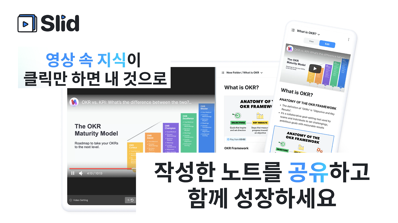 구글은 YouTube를 세계에서 가장 큰 학교라고 말합니다. 언제 어디서든지 인터넷에 연결해 온라인의 지식을 손쉽게 Slid로 방대한 지식을 나만의 지혜로 만들 수 있습니다.