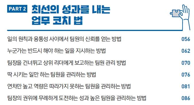 책에서는 관리방법으로 제언을 했습니다만 저는 코칭 차원의 접근을 권유해 드립니다.