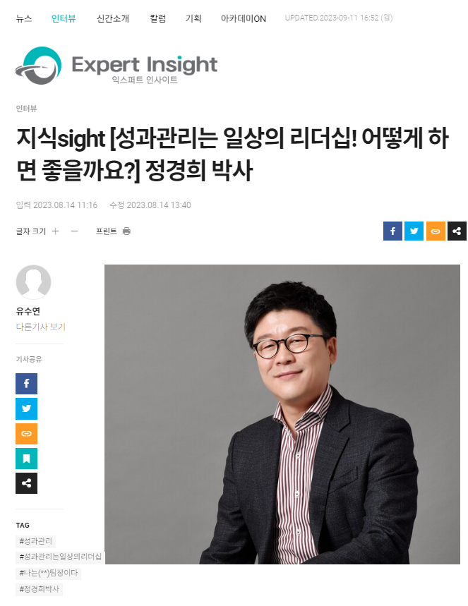 D그룹 교육팀장이었던 정경희 박사는 2004년 7월 엑설런스 컨설팅을 창업했다. 첫 강의는 하이닉스반도체 팀장과 파트장 대상으로 3일 24시간 동안 진행한 성과관리(Effective Performance Management) 과정이었다. 이후 수많은 조직에 성과관리 강의를 진행하며 성과관리는 “일상의 리더십”이라고 정리했다. 본 아티클 목적은 수많은 리더들과 함께 고민했던 성과관리 핵심 질문에 대한 솔류션과 인사이트 제공에 있다고 밝혔다.