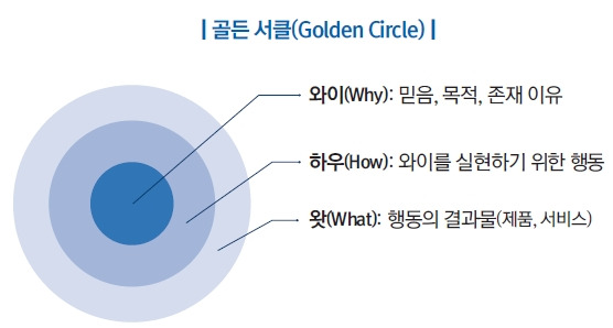 잡 크래프팅은 결국 스스로 일을 잘할 수 있도록 깨닫는 과정입니다. 일의 목적과 의미를 명확하게 설명해 주면 팀원들은 스스로 그 일을 더 잘하기 위해서 노력하게 된다고 제언합니다(나는 권한을 위임하는 팀장이다, 2020) 또한 일의 목적과 의미를 "나는 왜 이일을 하는가"라는 개념을 빌어 골든 써클을 제시합니다.